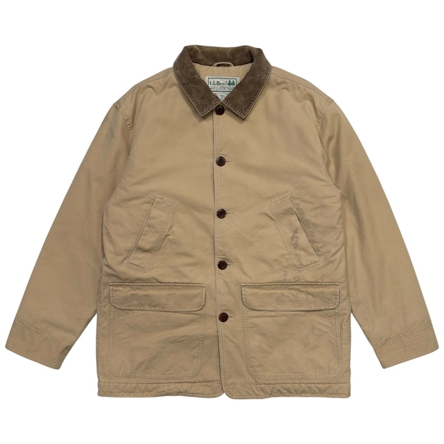 Size : M (身幅63cm 着丈79cm 袖丈62cm) アメカジ・アウトドア古着の絶対的な名作、「L.L.Bean」のフィールドコート。 タフなベージュのコットンキャンバス生地に、ブラウンのコーデュロイ襟を合わせた王道のデザイン。 高機能なマイクロファイバー中綿であるシンサレートがキルティング状にたっぷりと詰まっており、一般的な裏地のみのモデルと比べて段違いの保温性を誇ります。風を通しにくいキャンバス生地との組み合わせで、真冬のメインアウターとしても大活躍してくれます。