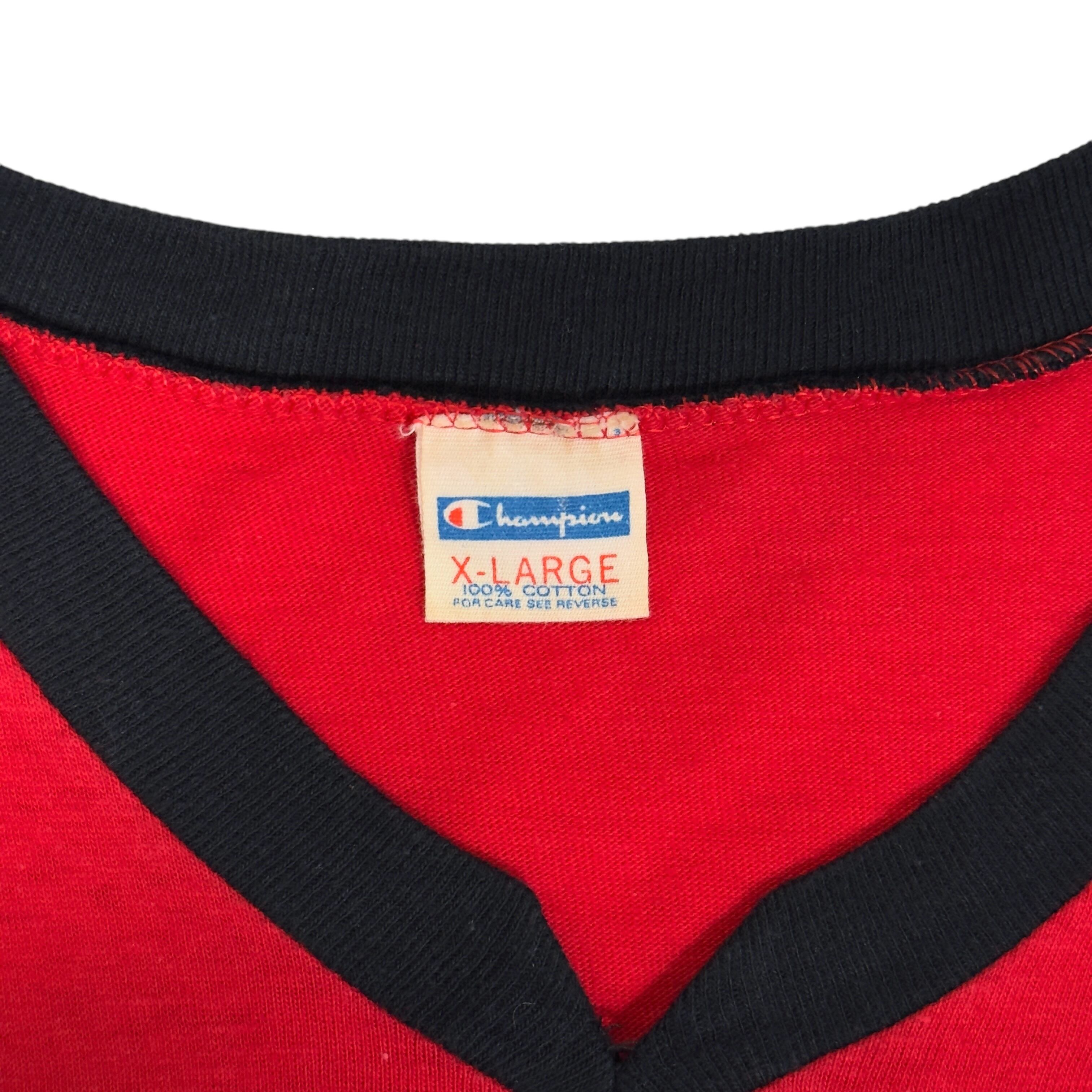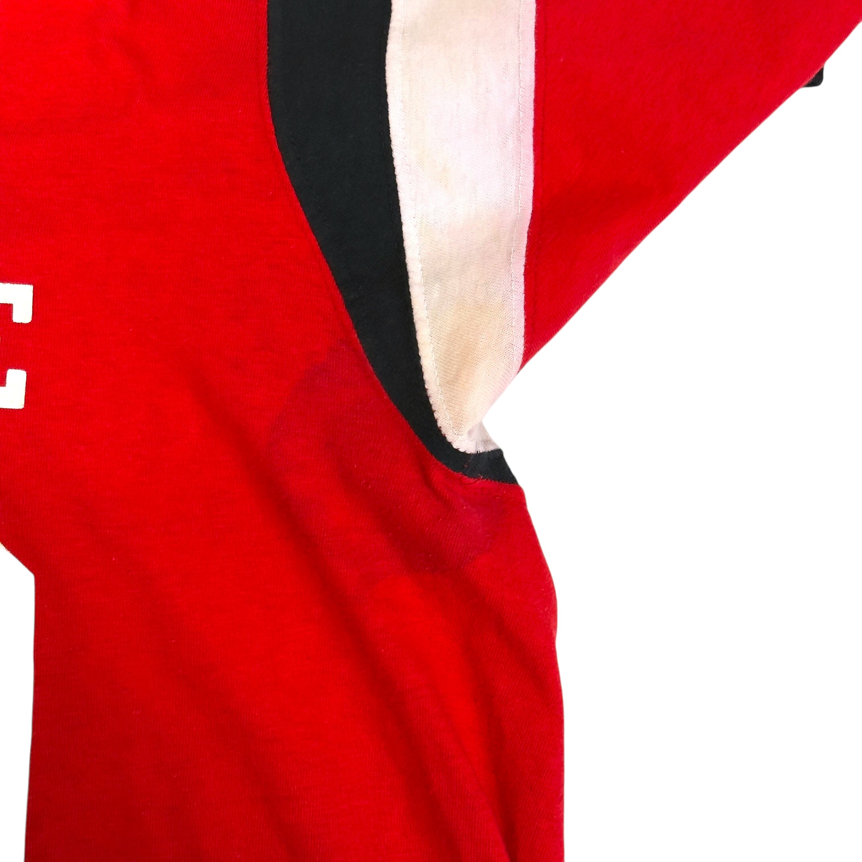 カレッジプリントといえばなOHIO STATEのロゴと「00」のナンバリングがプリントされ、ボディは真っ赤なカラーリングにブラックのネックと袖口、ホワイトのラインが入った王道の配色。