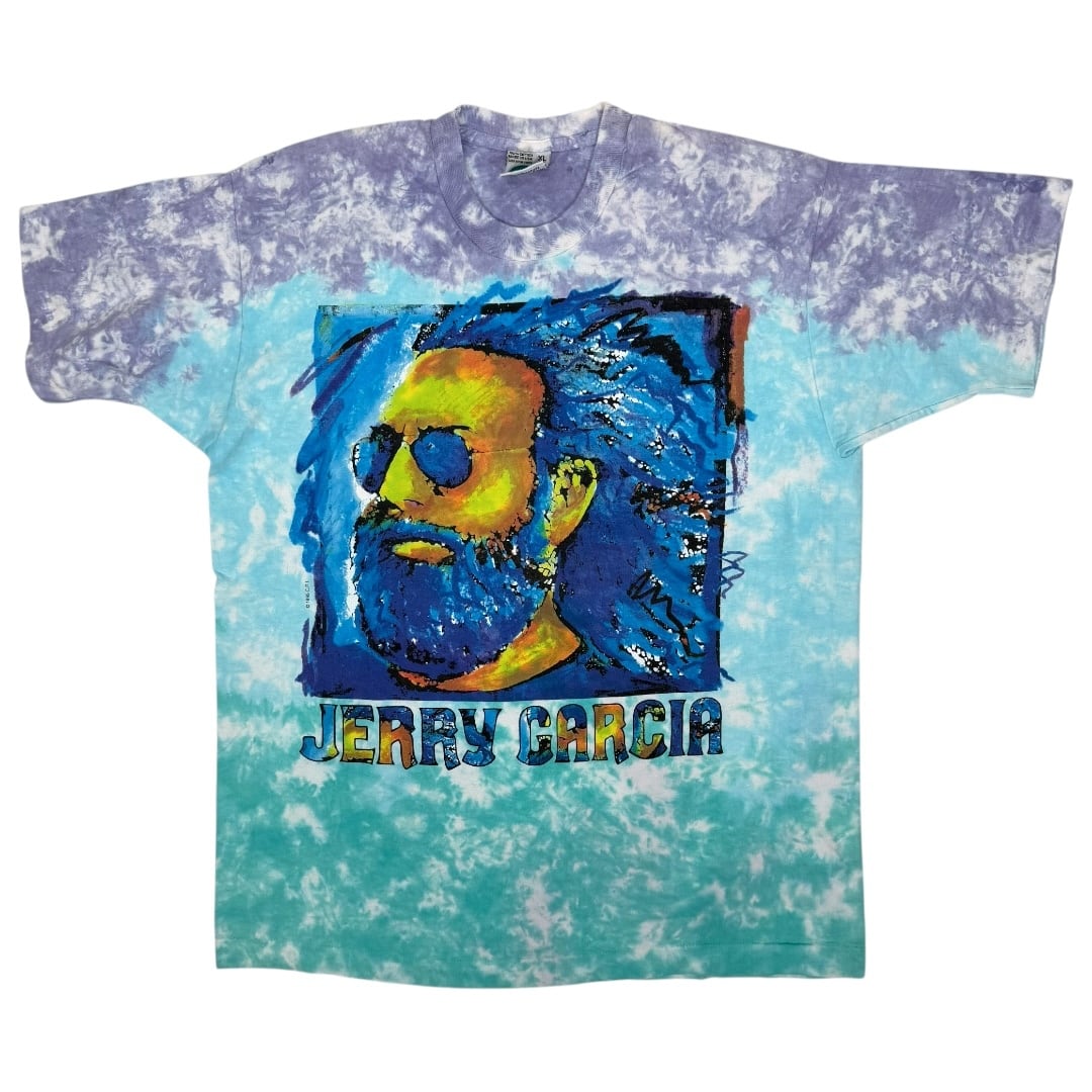 "Grateful Dead"の伝説的フロントマン、Jerry Garciaが水彩画のようなタッチで描かれたプリントが印象的な一枚。インパクトのあるデザインが多く人気の高いLiquid Blue製。