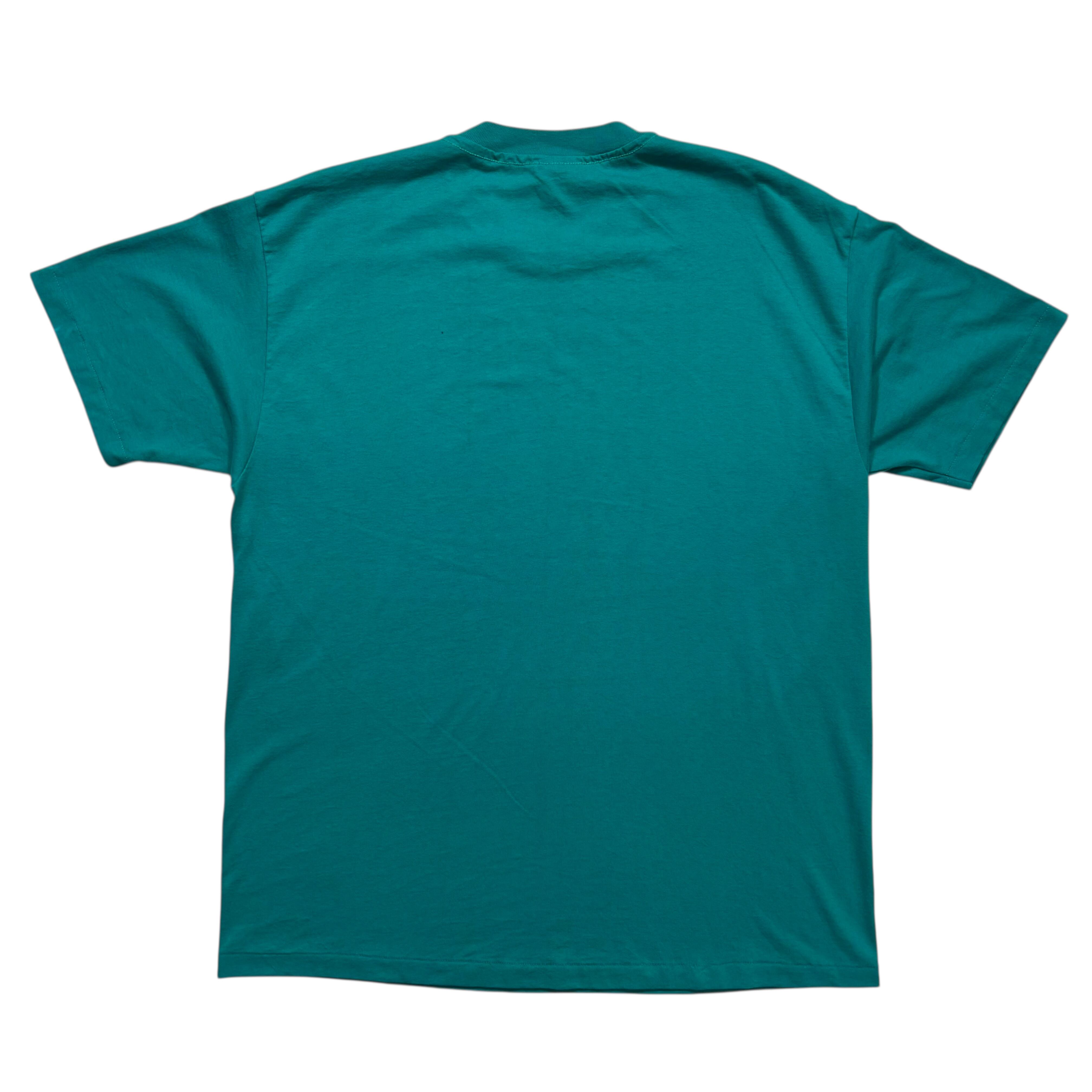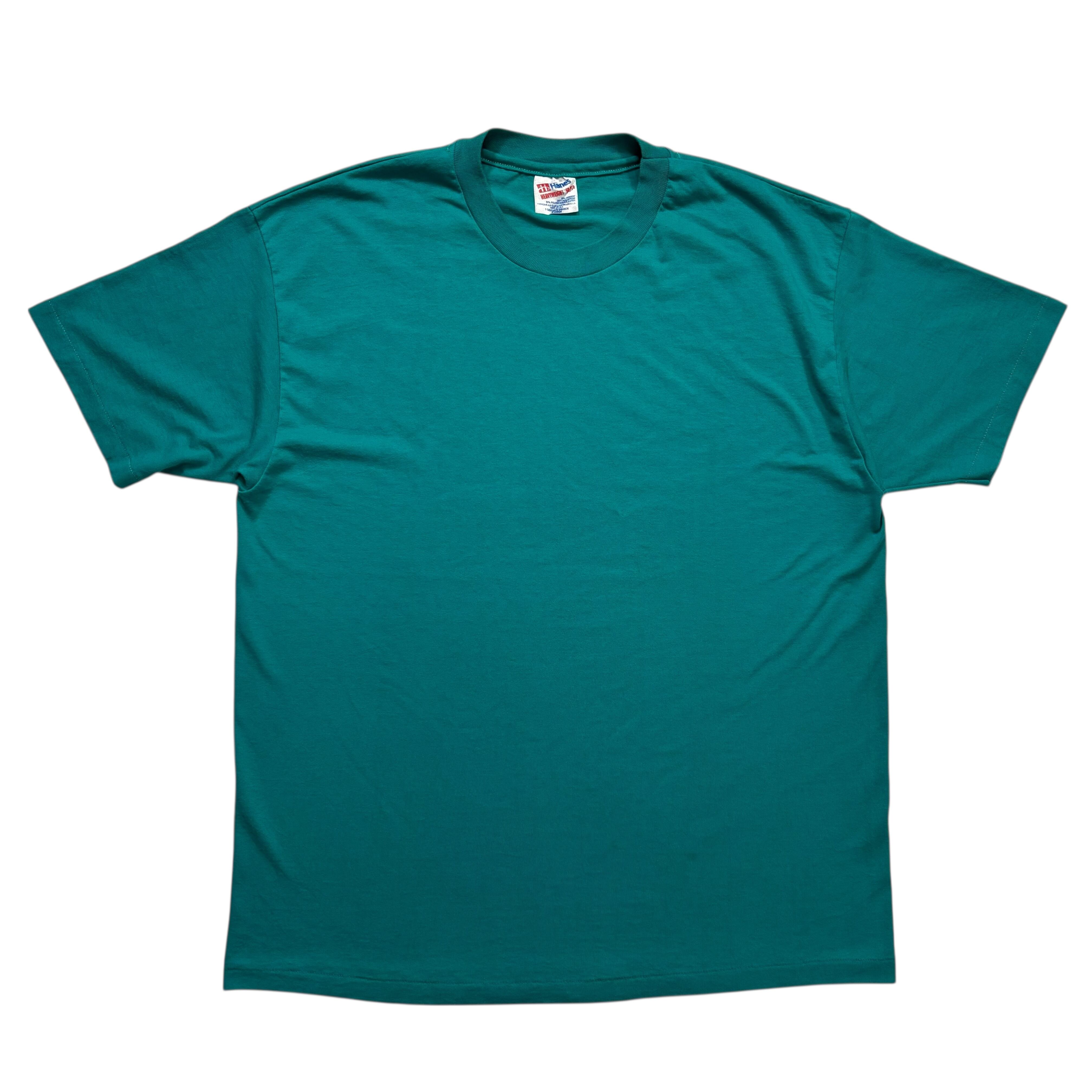 90年代製、アメリカ製Hanes “Heavyweight 50/50”ボディの無地Tシャツ。発色の良いエメラルドグリーンが目を引く一枚です。
