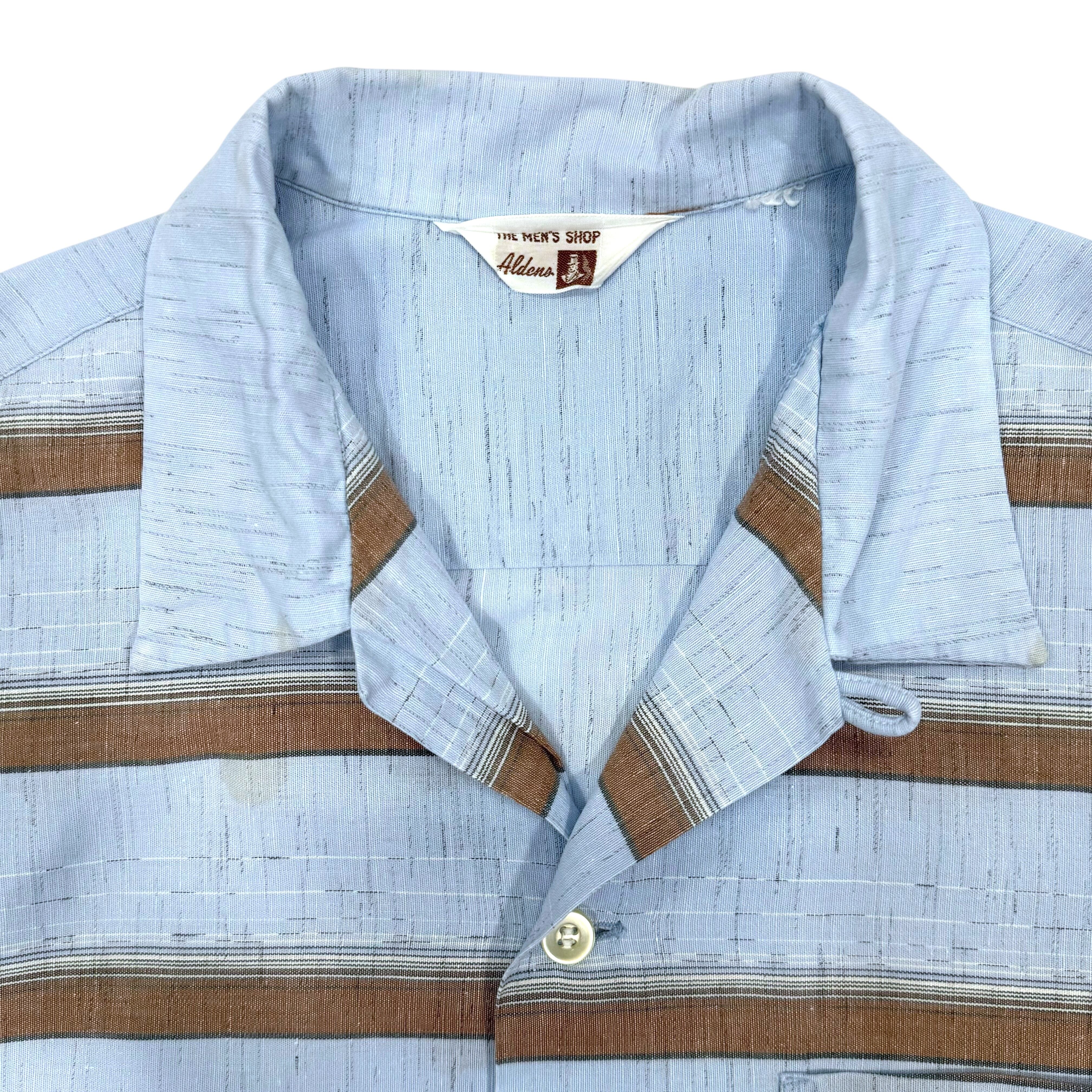 淡いブルーのボディに、ブラウンのラインが効いた"Aldens"製のヴィンテージオープンカラーシャツ。