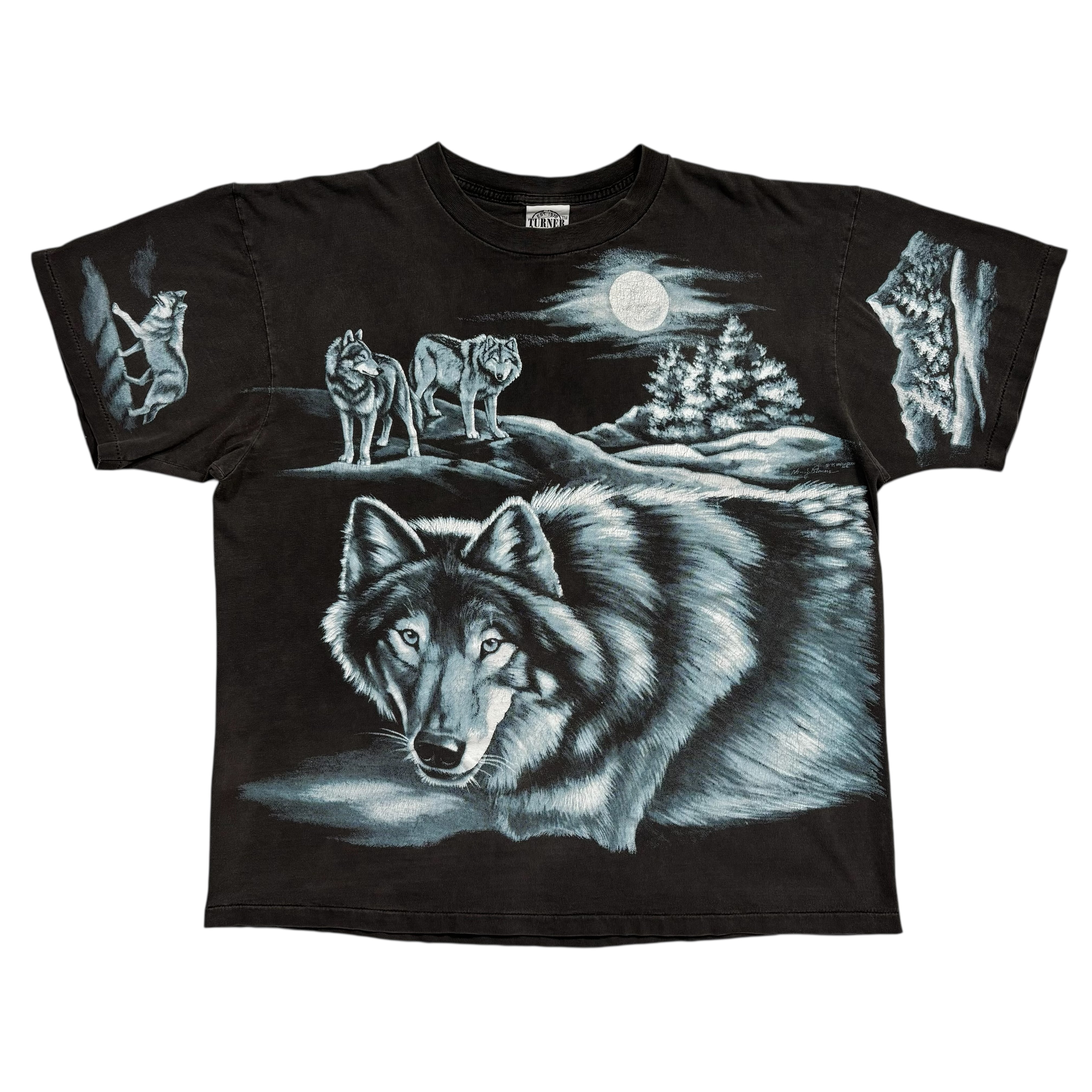 90年代製、オオカミをモチーフにしたアニマルプリントTシャツ。
