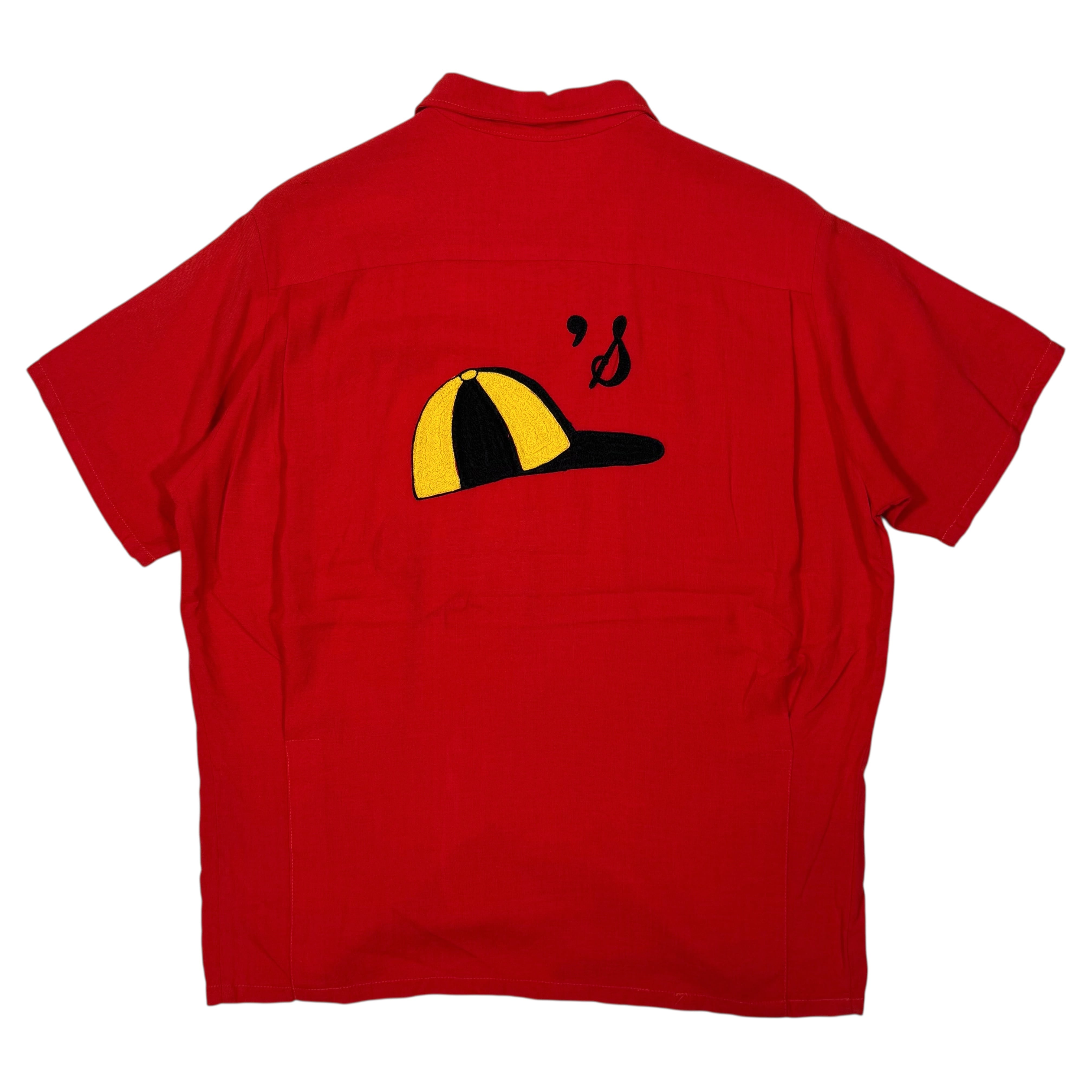 鮮烈なレッドカラーのボディに「Bob」のネーム刺繍、背面にはブラック×イエローのキャップモチーフが刺繍されたアイコニックなデザインの一着。