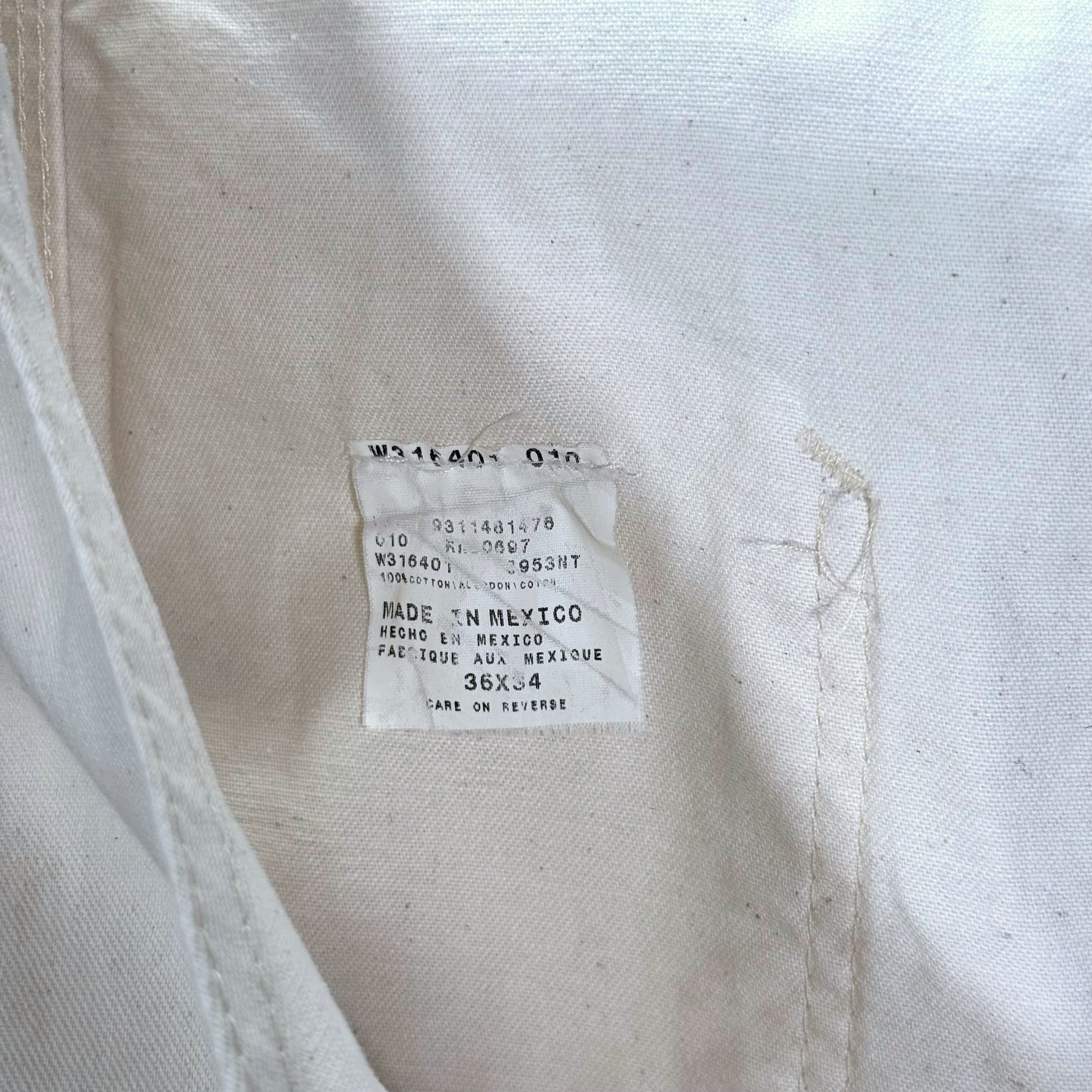 真っ白じゃなくて、少し生成りっぽいナチュラルなカラーです。メキシコ製のコットンツイルで、程よく厚みがあって柔らかい生地感。ワークらしいディテールはそのままに、清潔感のある一本です。