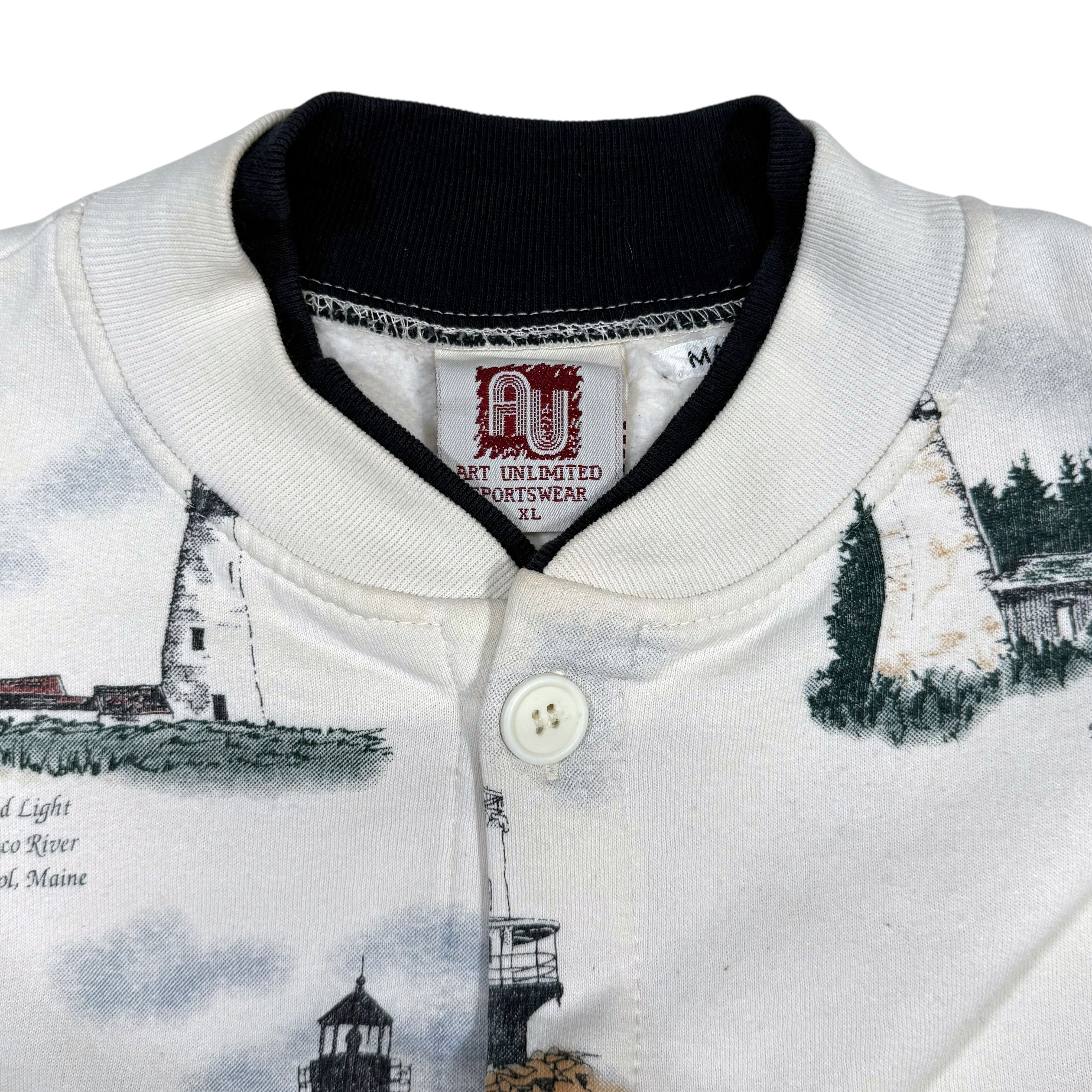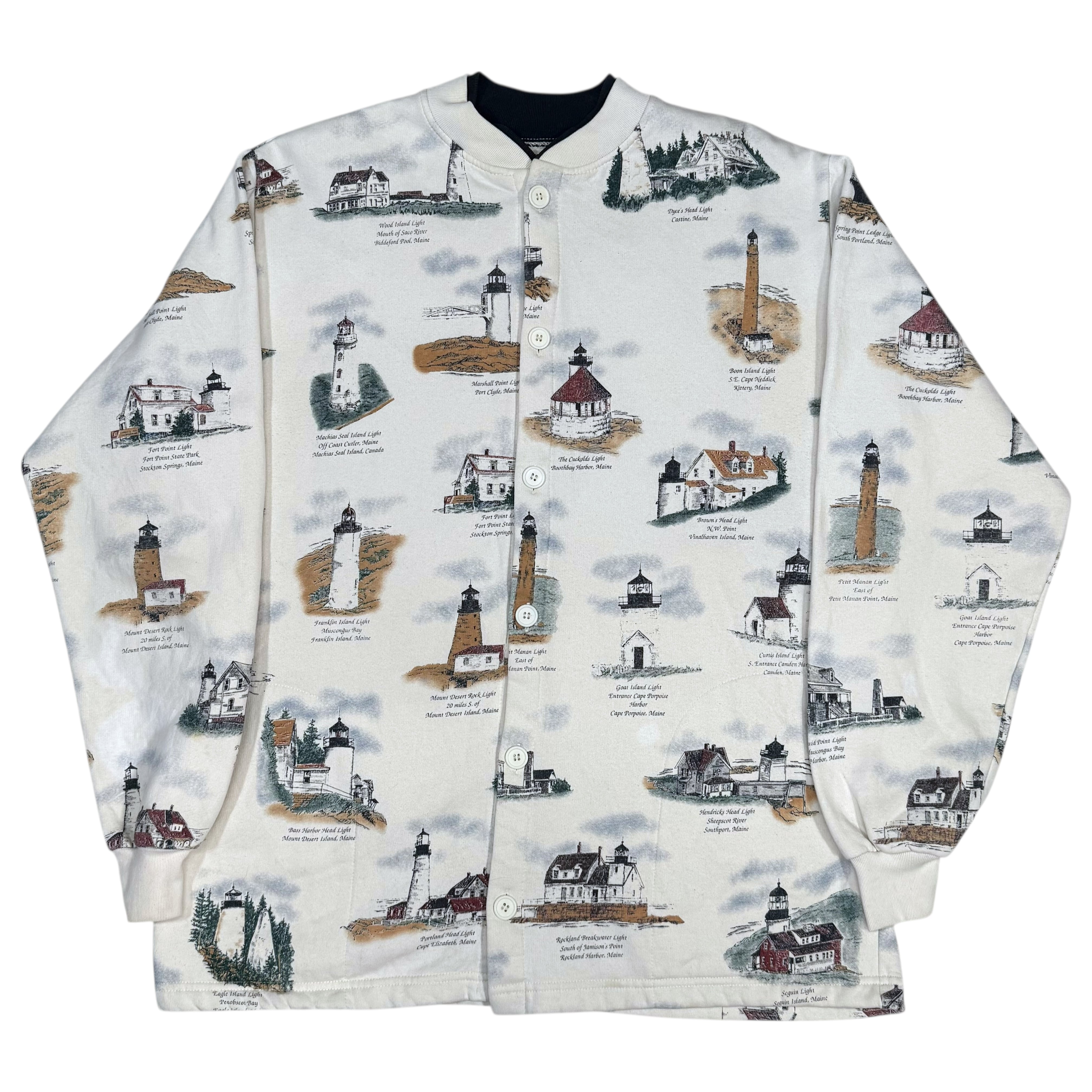 90’s Art Unlimited Lighthouse Print Sweat Cardigan