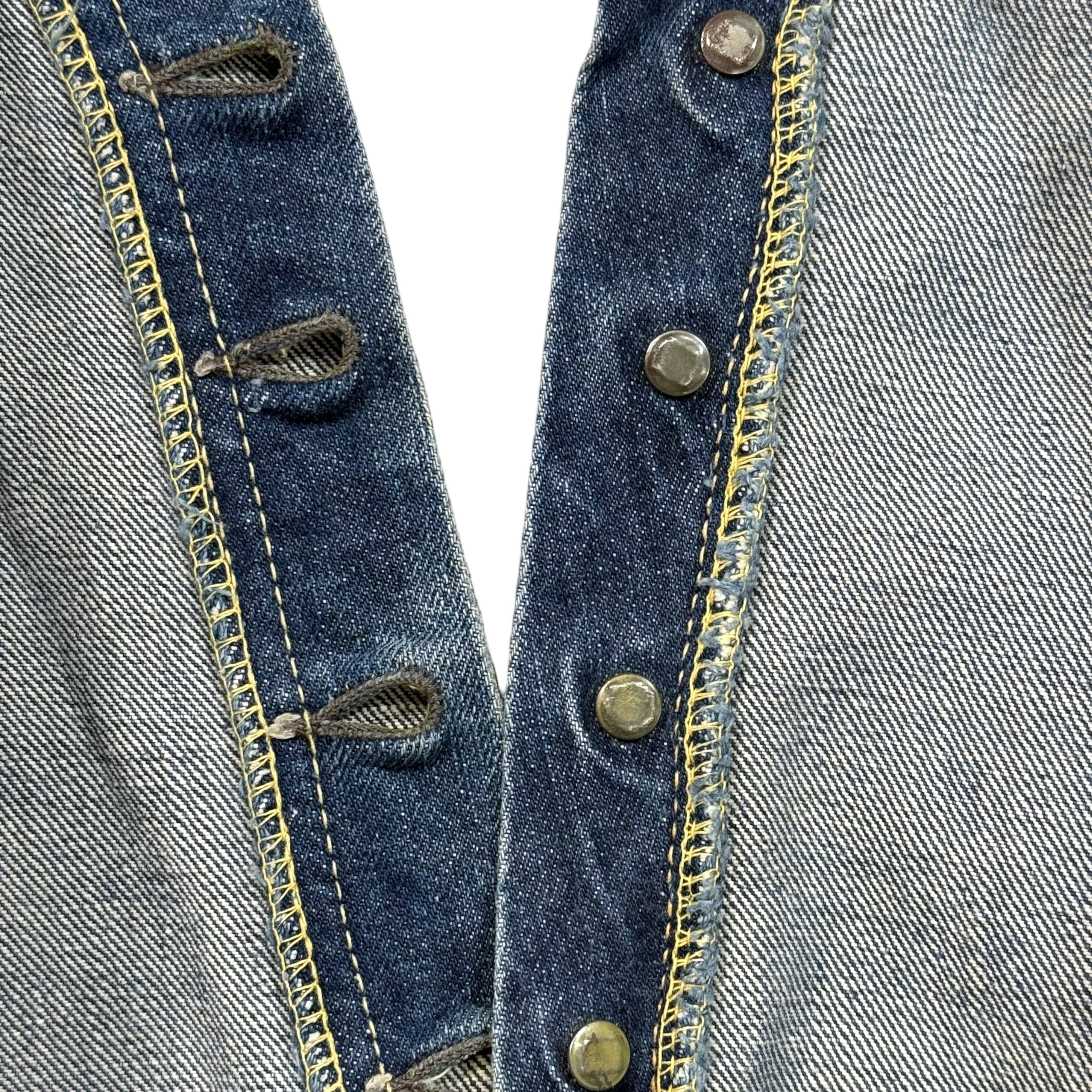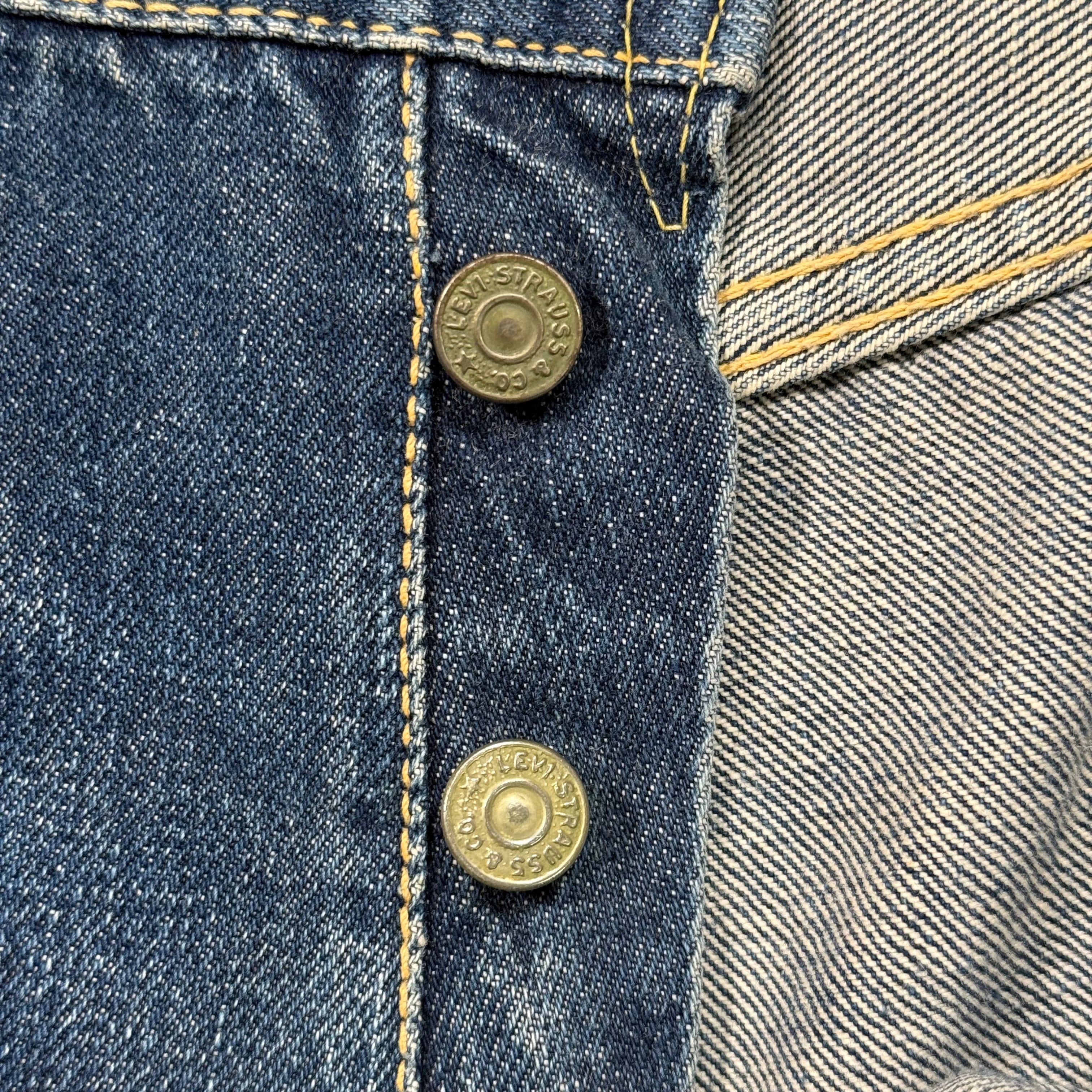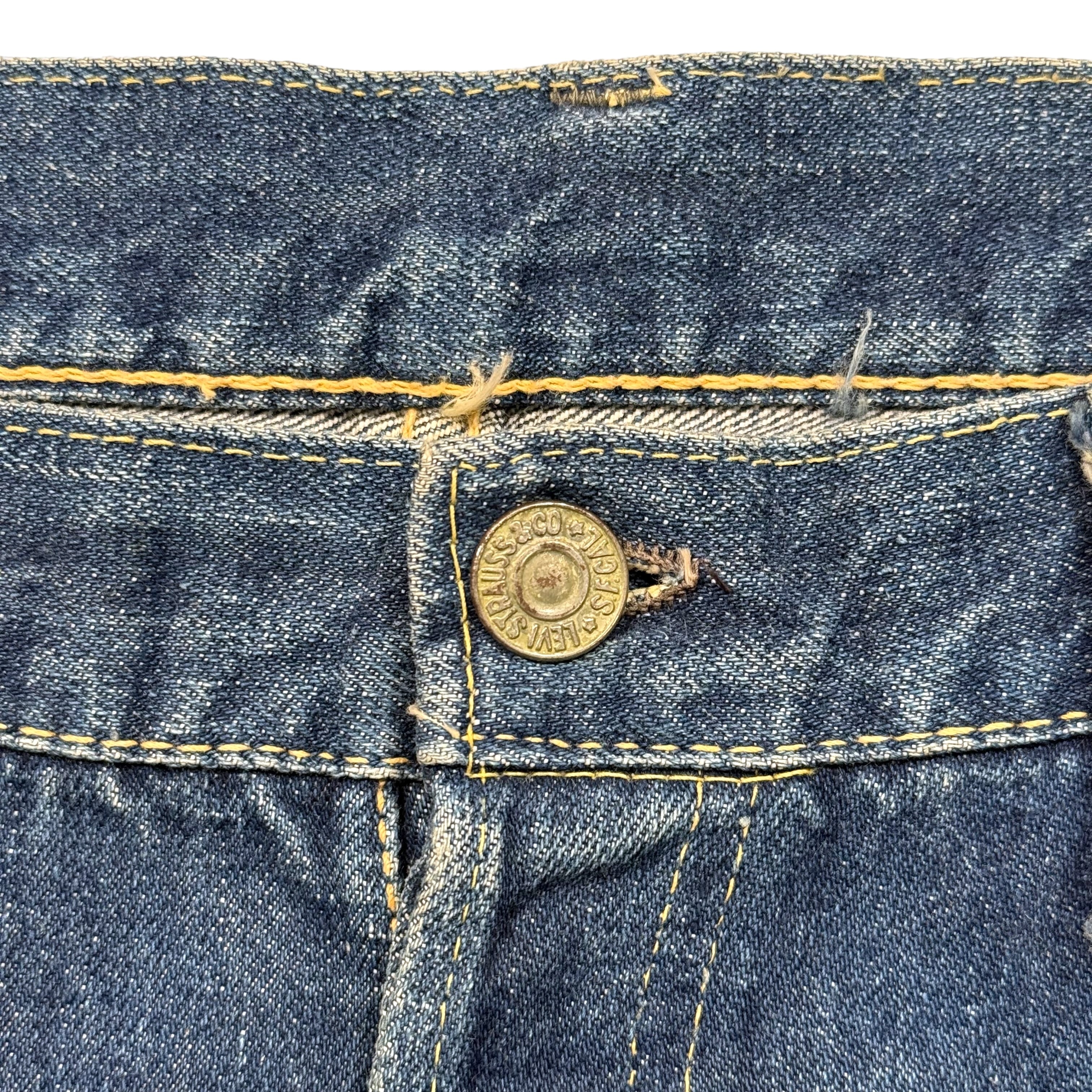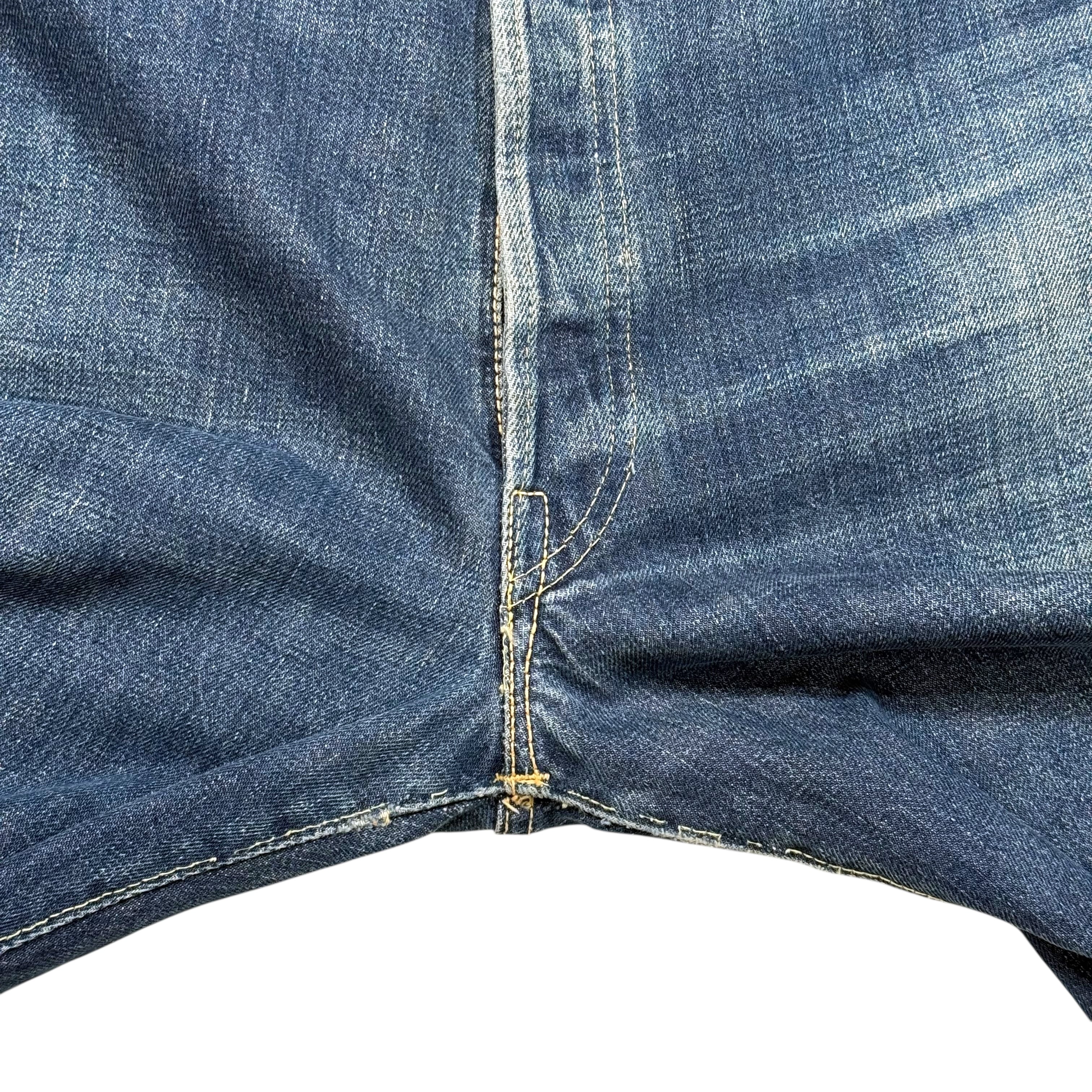 60’s頃の Levi’s 501XX、紙パッチ期の一本です。オフセットループにオールイエローステッチ、銅の隠しリベット、両面タブの均等V、トップボタンのV字ステッチ、ボタン裏刻印「S」、トップボタン以外は足長R、リベット裏に刻印無し。