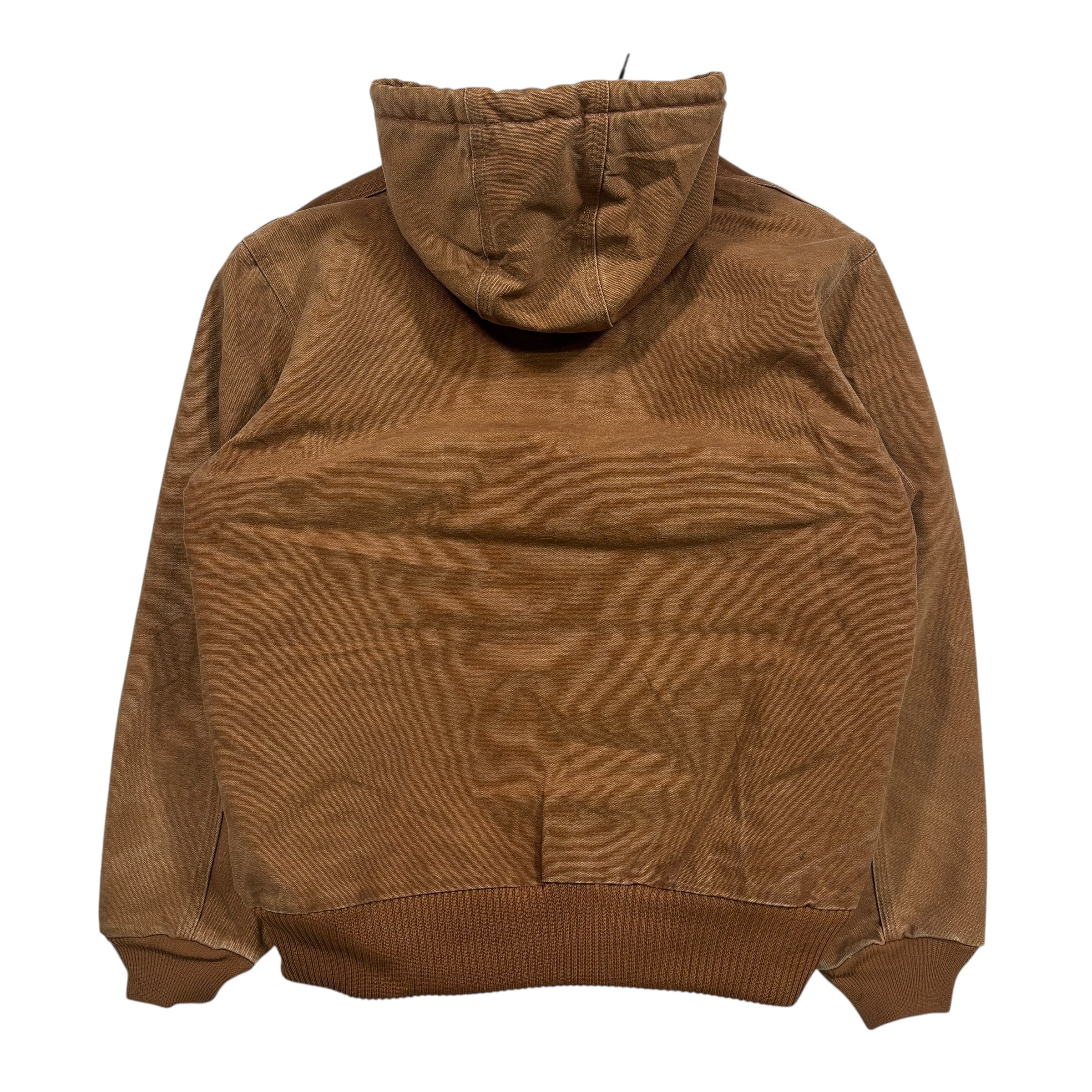 フード、袖口・裾のリブが風を防ぎつつ、全体的にゆったりめのシルエットでストリートに馴染むバランス。