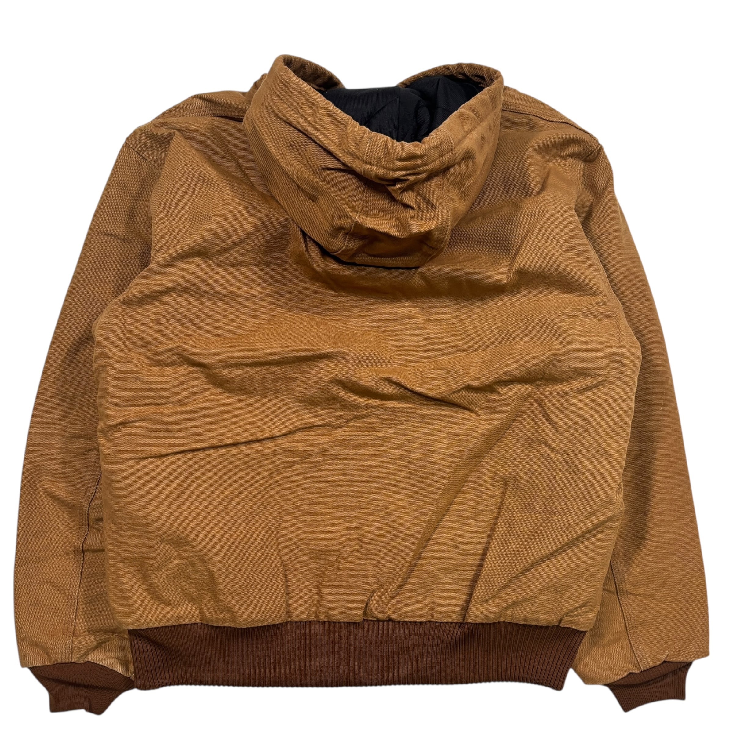 フード、袖口・裾のリブが風を防ぎつつ、全体的にゆったりめのシルエットでストリートに馴染むバランス。