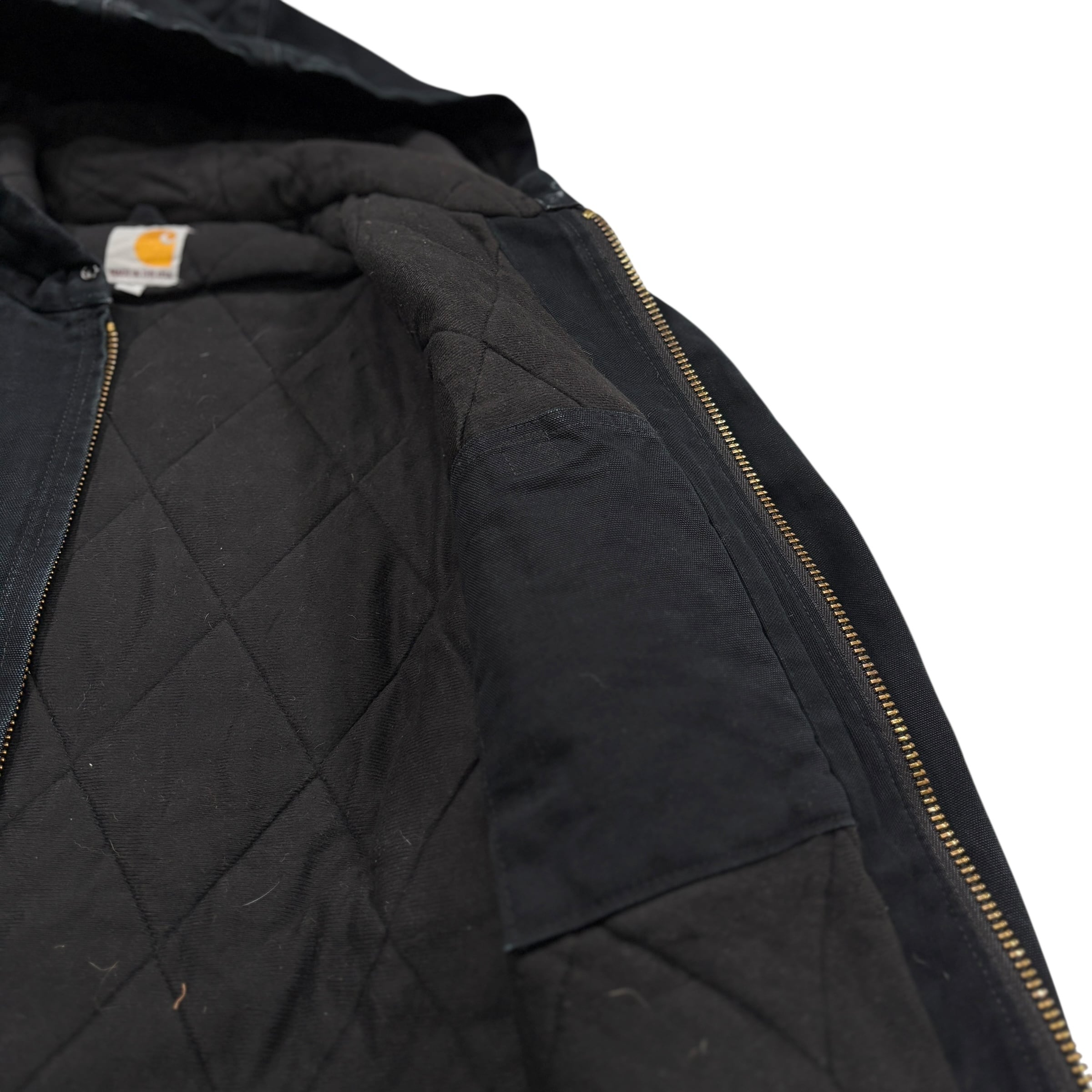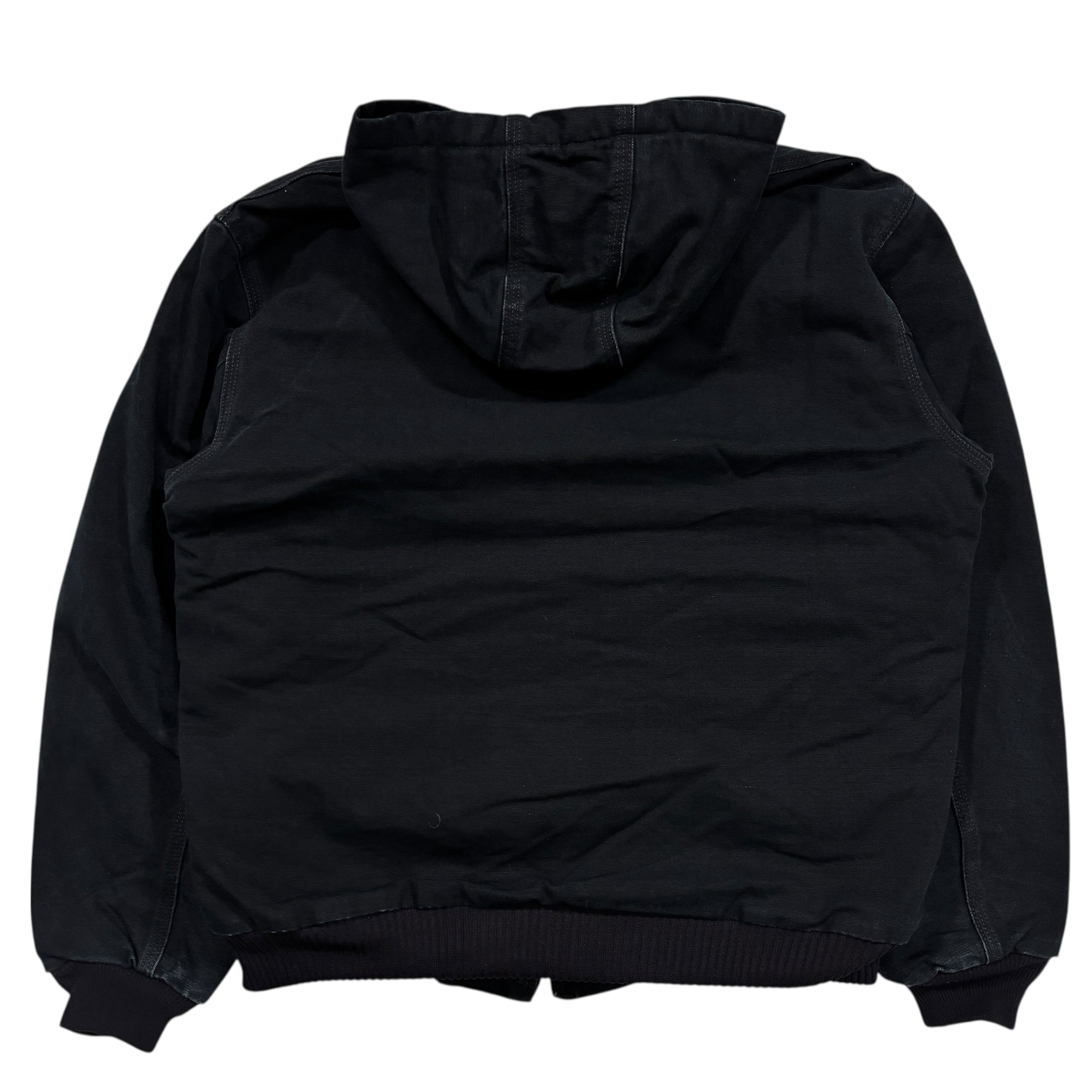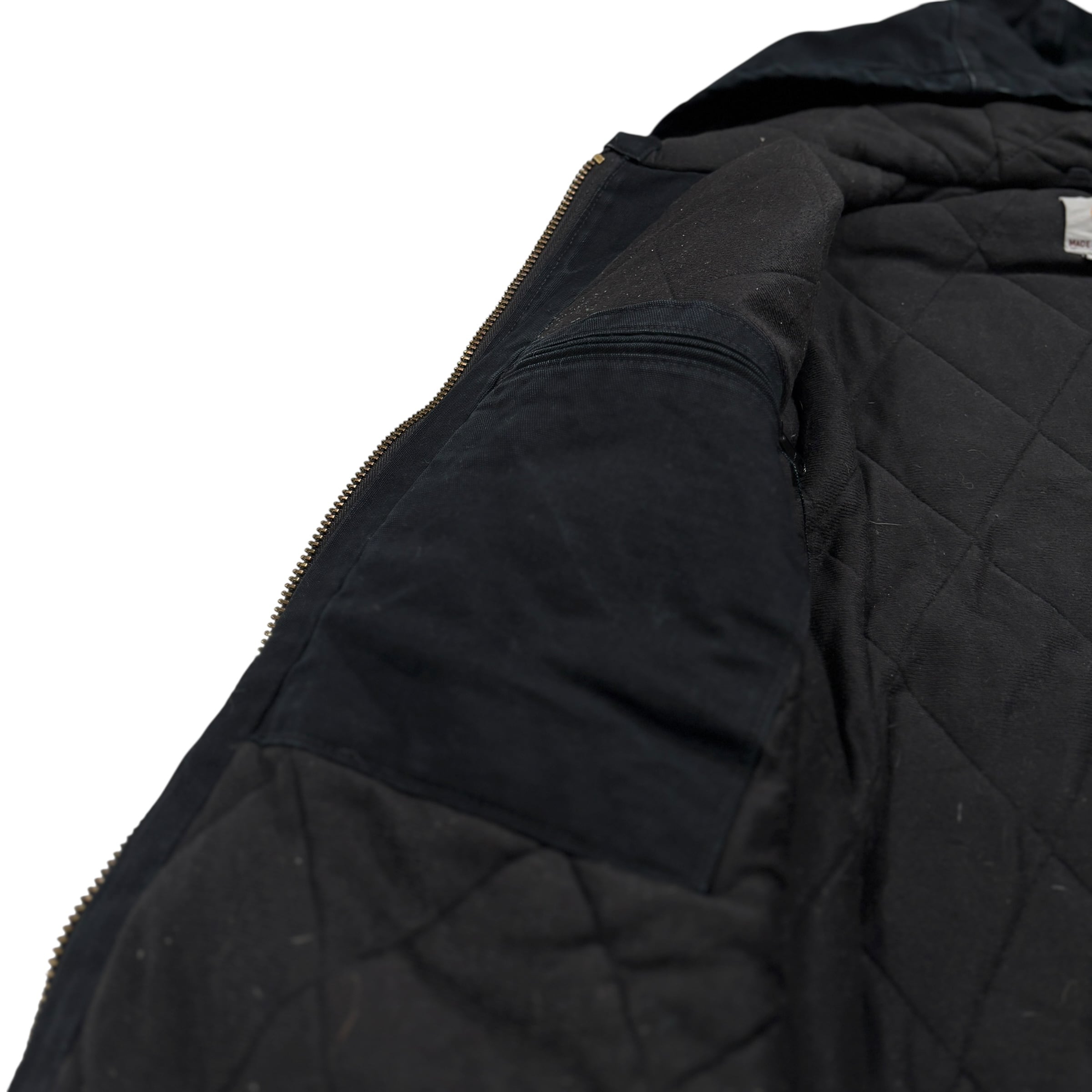 フード、袖口・裾のリブが風を防ぎつつ、全体的にゆったりめのシルエットでストリートに馴染むバランス。