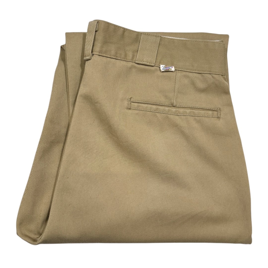股上は深めで、全体的にゆったりとしたストレートシルエット。ウエスト部分は調整用の縫い合わせ仕様になっており、無骨なワークらしさが際立つつくり。