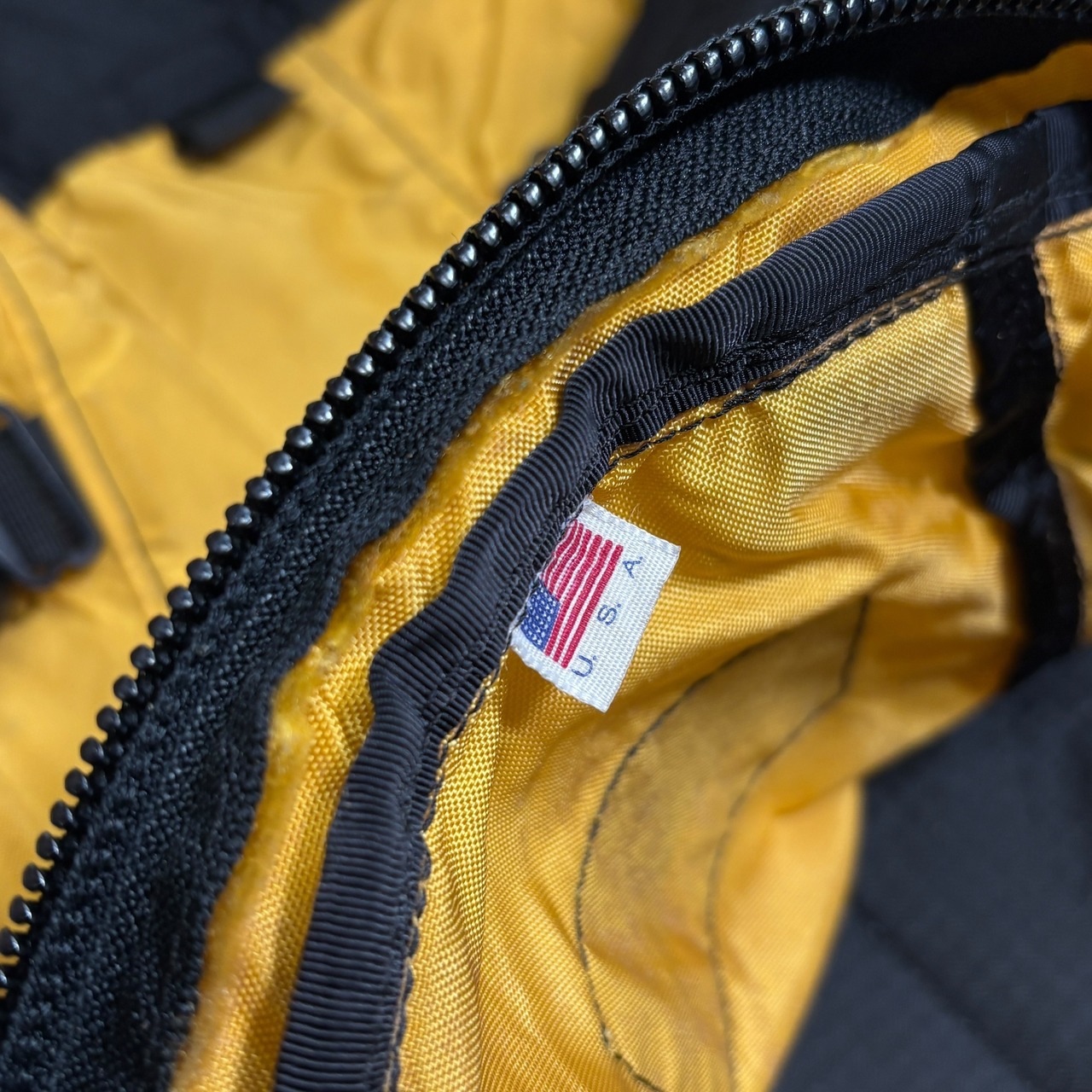 カラーはマリーゴールド。発色の良いイエローにブラックの切り替え、当時らしい配色バランス。
