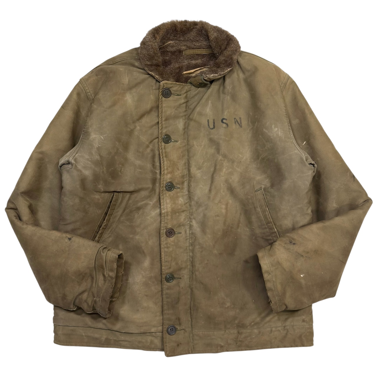 フロントの「USN」と背面の「CVA 61 / MED 09」ステンシルのおかげで、通常の無地個体とは違った雰囲気に。