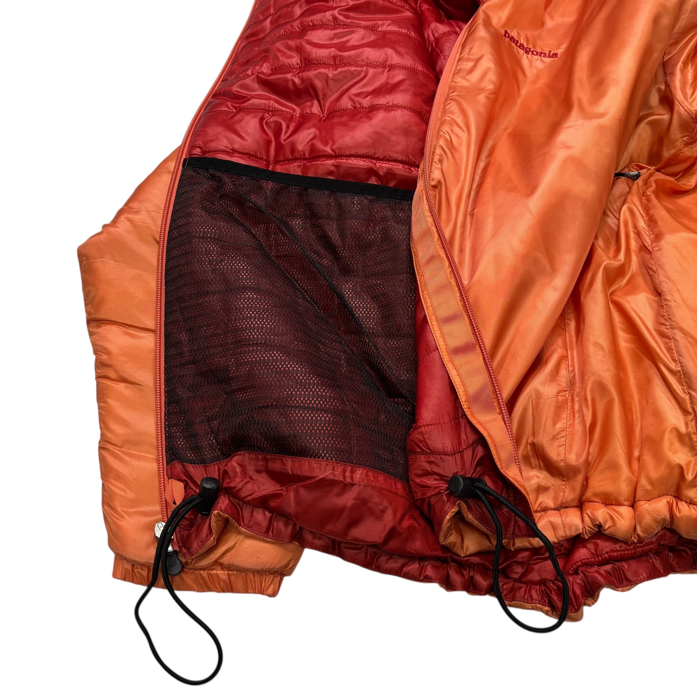 マイクロパフは、ダウンに近い軽さと保温性を持ちながら、濡れても潰れにくく、保温力を維持できる化繊インサレーションを使用したシリーズで、当時のパタゴニアを代表する高機能防寒ウェア。中綿にはプルマフィル・インサレーションが採用されており、軽量性とコンパクト性、行動中の扱いやすさを重視した設計が特徴。