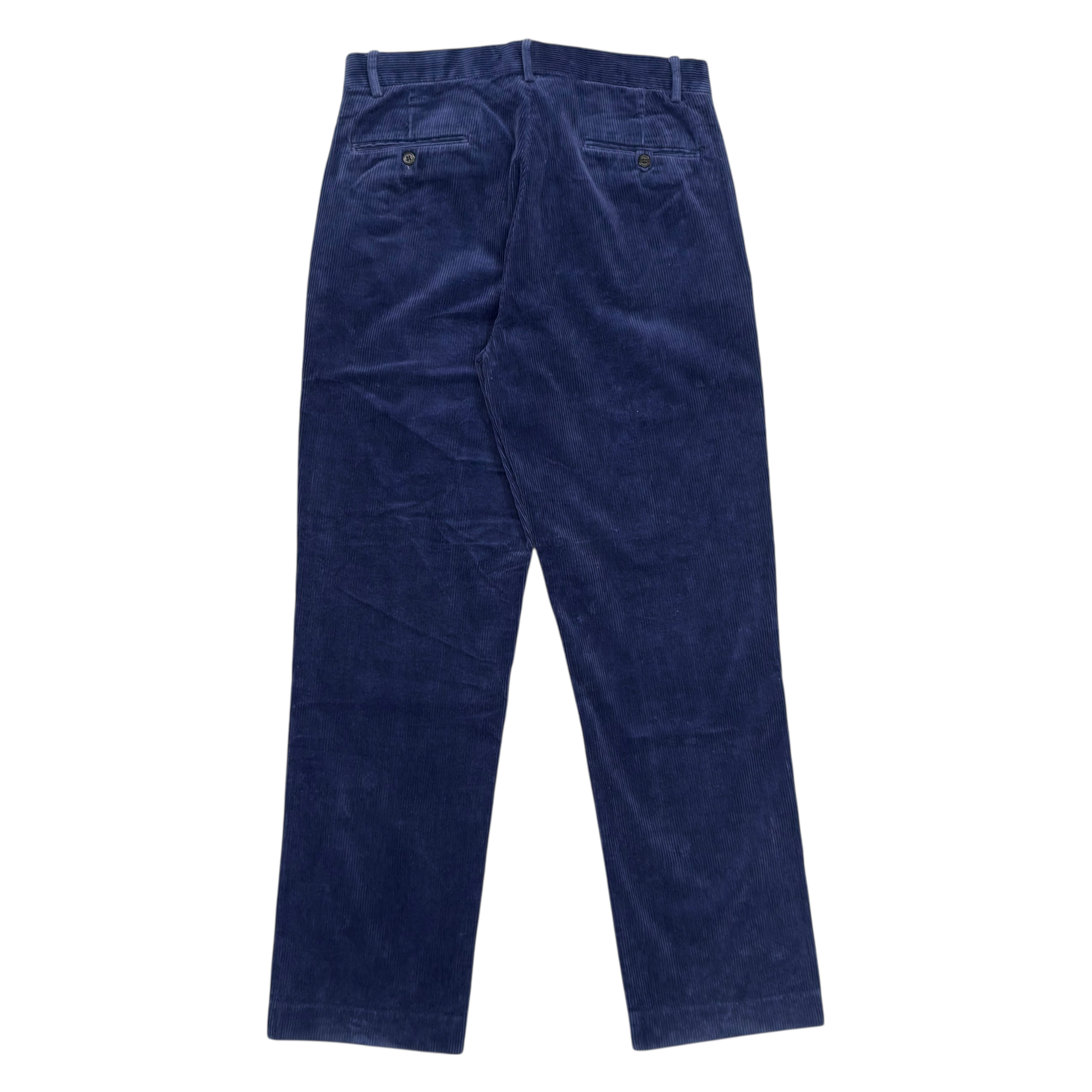合わせやすい定番のシルエットで、フロントはスラッシュポケット、バックはボタン付きの玉縁ポケットと、いわゆる“コーデュロイチノ/コーズスラックス”のバランスがちょうどいい一本です。デニムほど硬くなく、スラックスほど気を遣わないので、普段の服にそのまま混ぜられる万能枠。