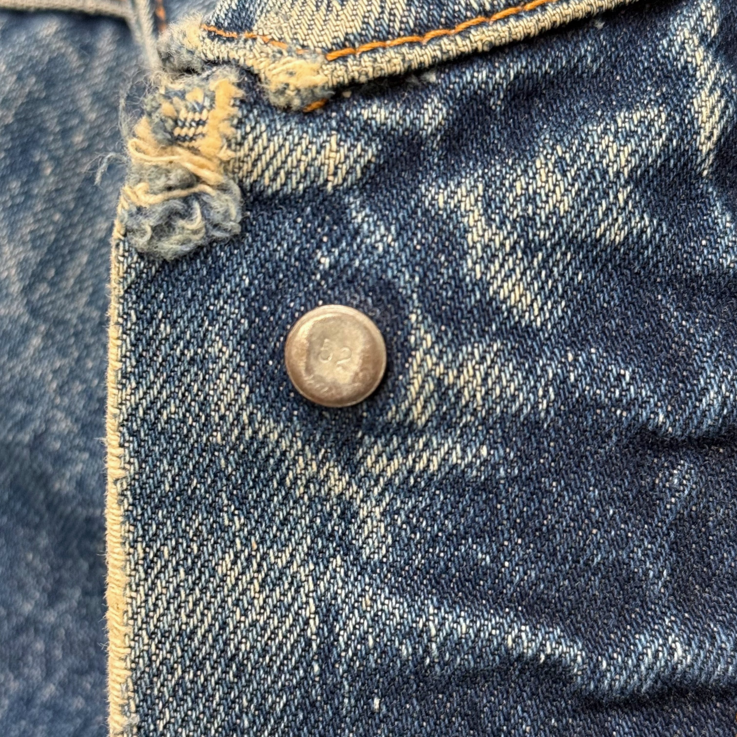 程良い色落ちに、袖の汚れ、若干のステッチ抜けはありますが全体的には状態の良い方かと。タブも欠損していますがボタン裏が52の2桁番号なので70年代初期、Big-EかSmall-eに移行したてぐらいの物だと思います。