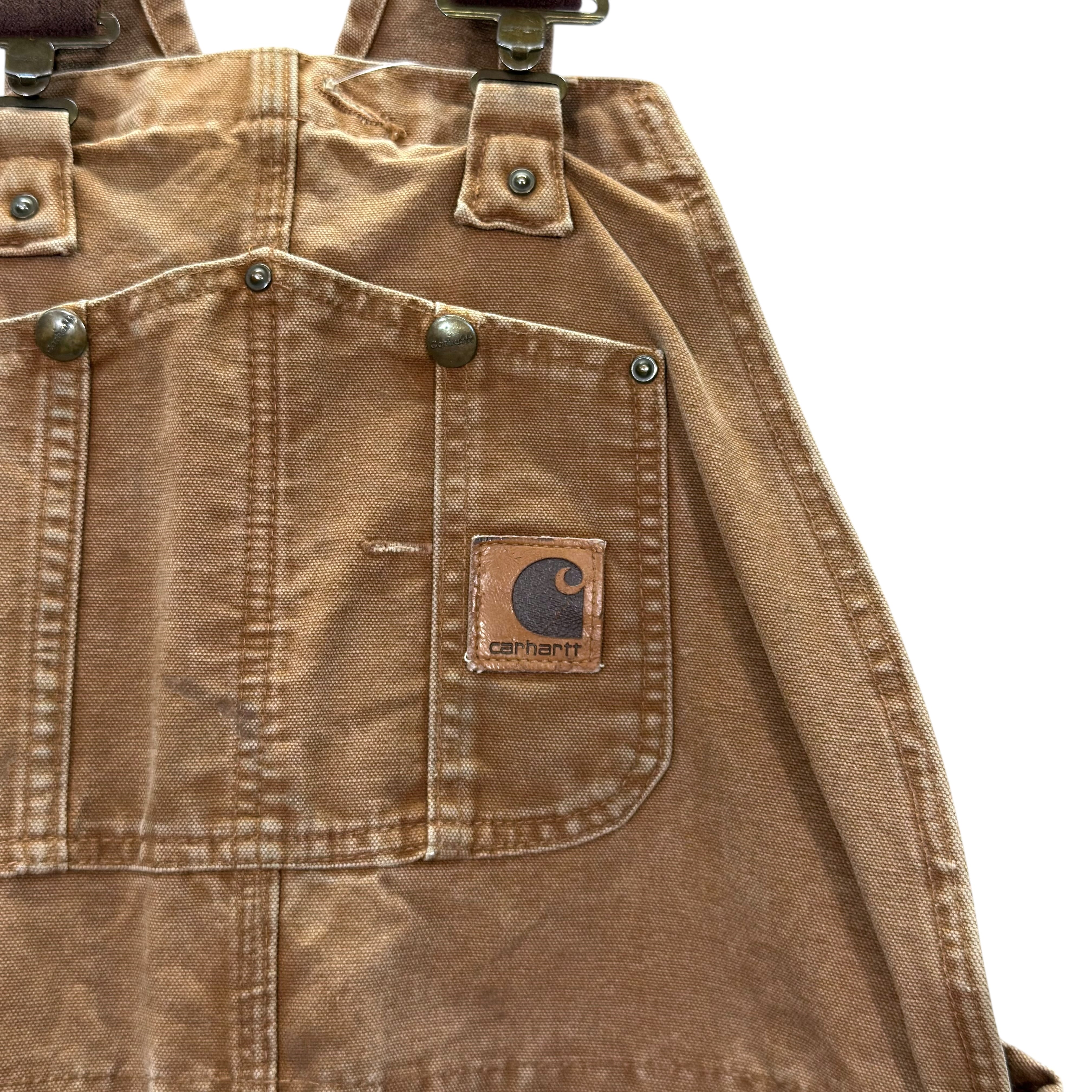 Carharttのダック素材オーバーオール。タフな生地感とワーク由来のディテールがしっかり詰まった1本です。フロントは大きめのビブポケット+サイドポケット、バックポケットも付く実用仕様で、普段使いでもちゃんと使える作り。