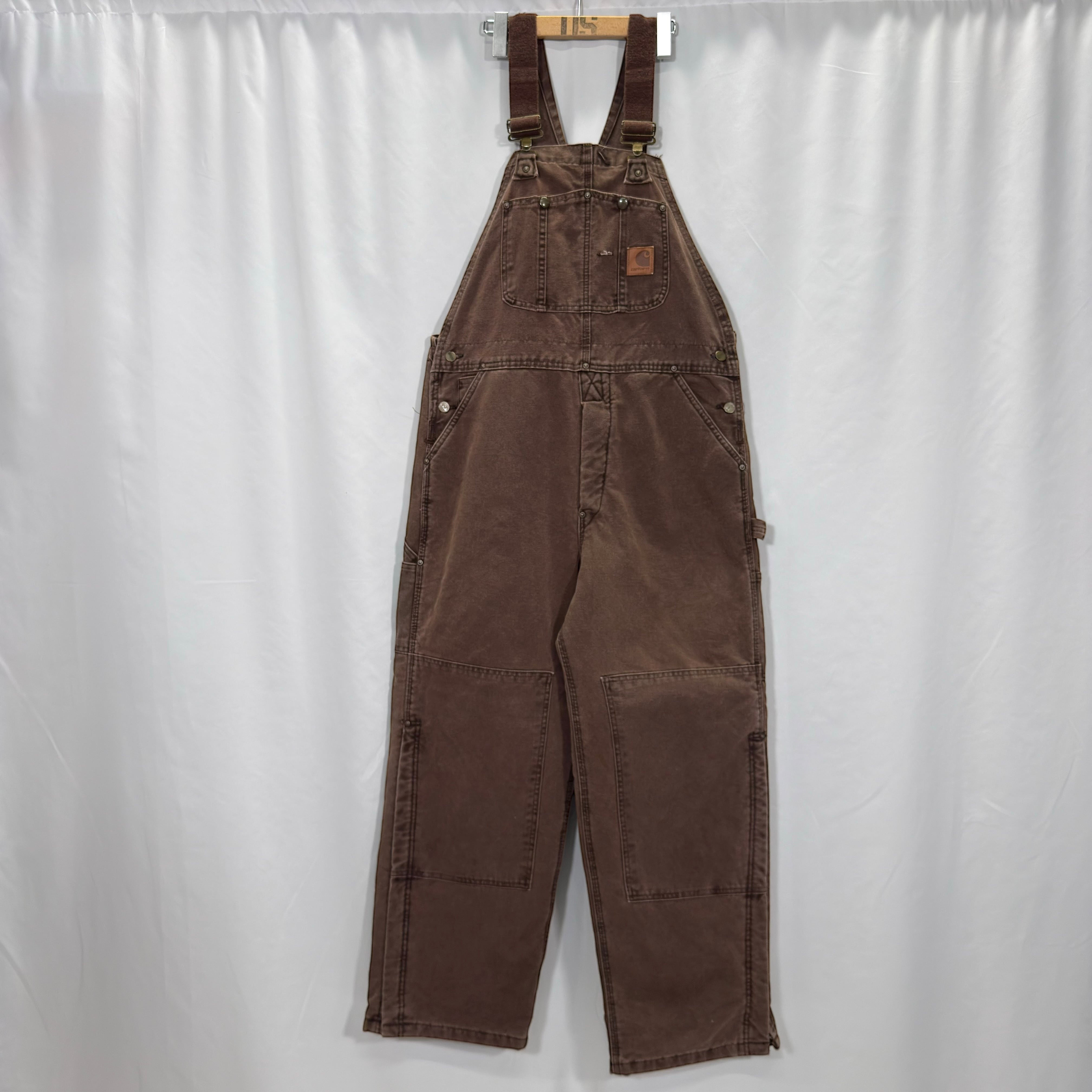 Carharttのダック素材オーバーオール。タフな生地感とワーク由来のディテールがしっかり詰まった1本です。フロントは大きめのビブポケット+サイドポケット、バックポケットも付く実用仕様で、普段使いでもちゃんと使える作り。