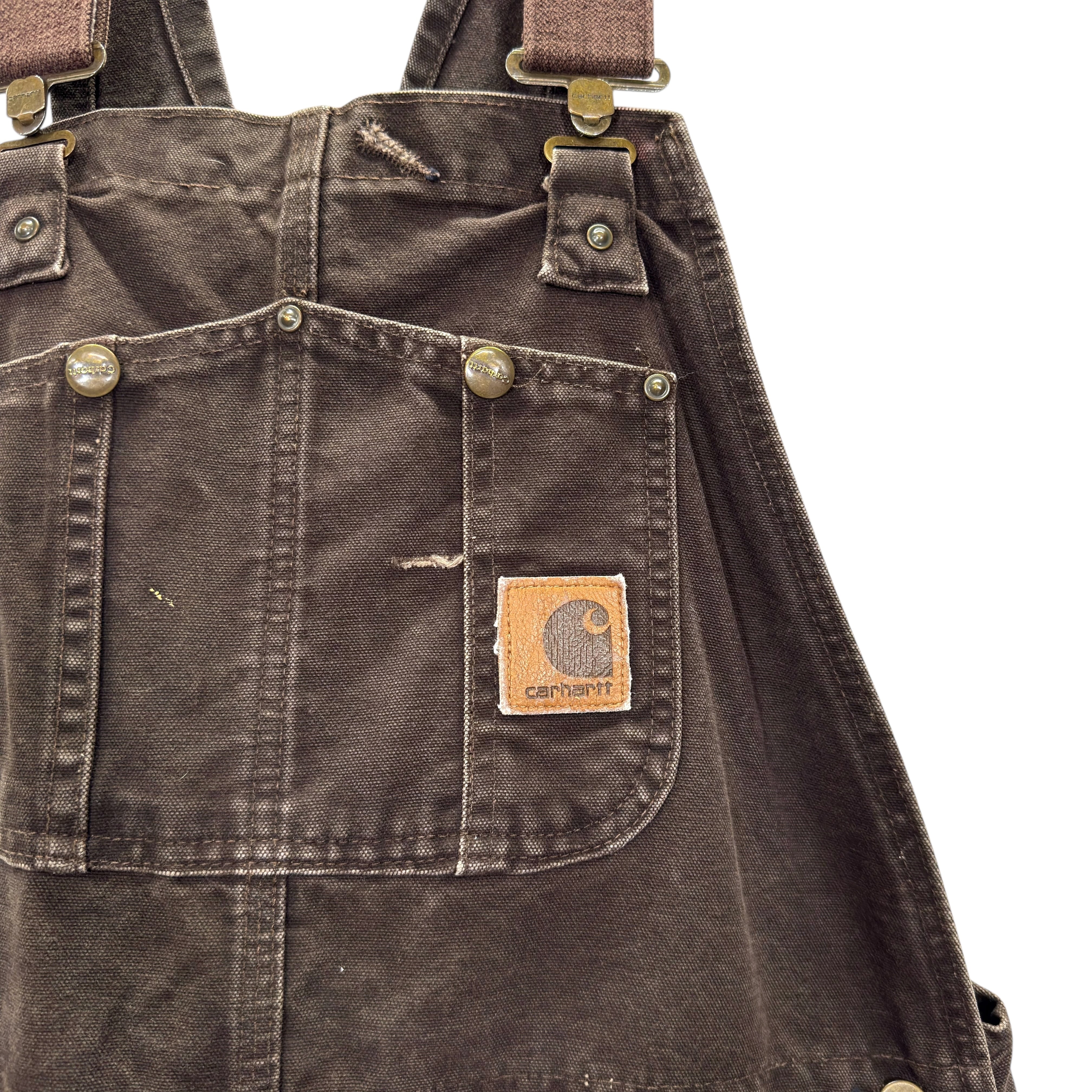 Carharttのダック素材オーバーオール。タフな生地感とワーク由来のディテールがしっかり詰まった1本です。フロントは大きめのビブポケット+サイドポケット、バックポケットも付く実用仕様で、普段使いでもちゃんと使える作り。