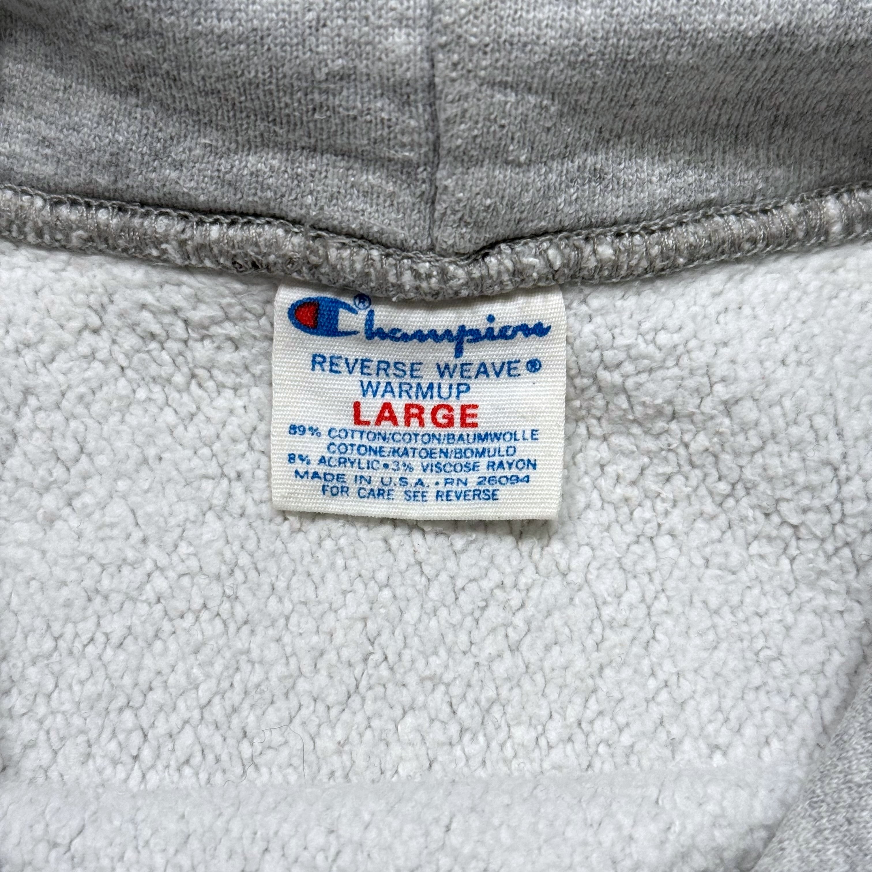 80年代Championトリコタグが付くReverse Weaveフーディ。フロントにはアーチ状にREBELSのレタードワッペン。