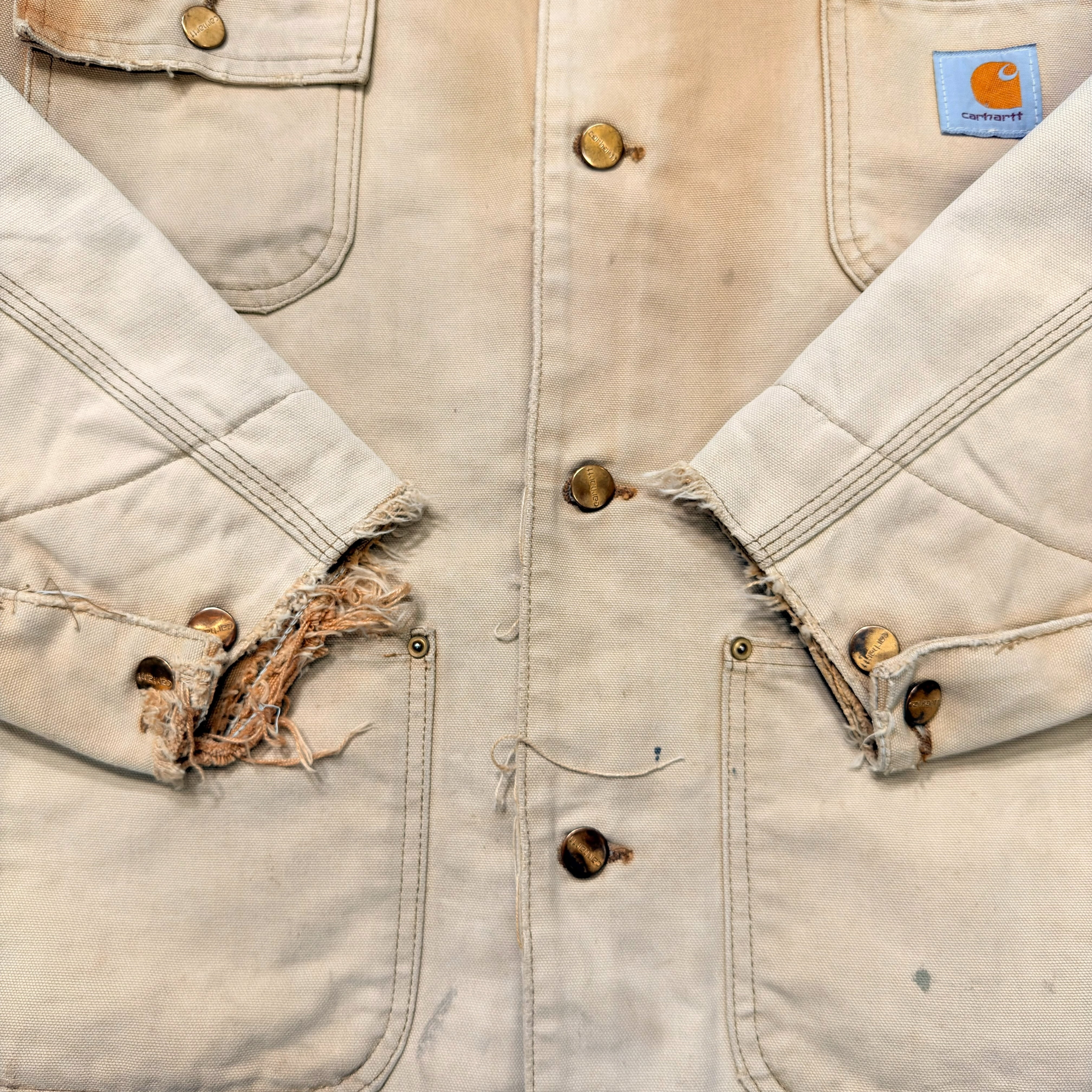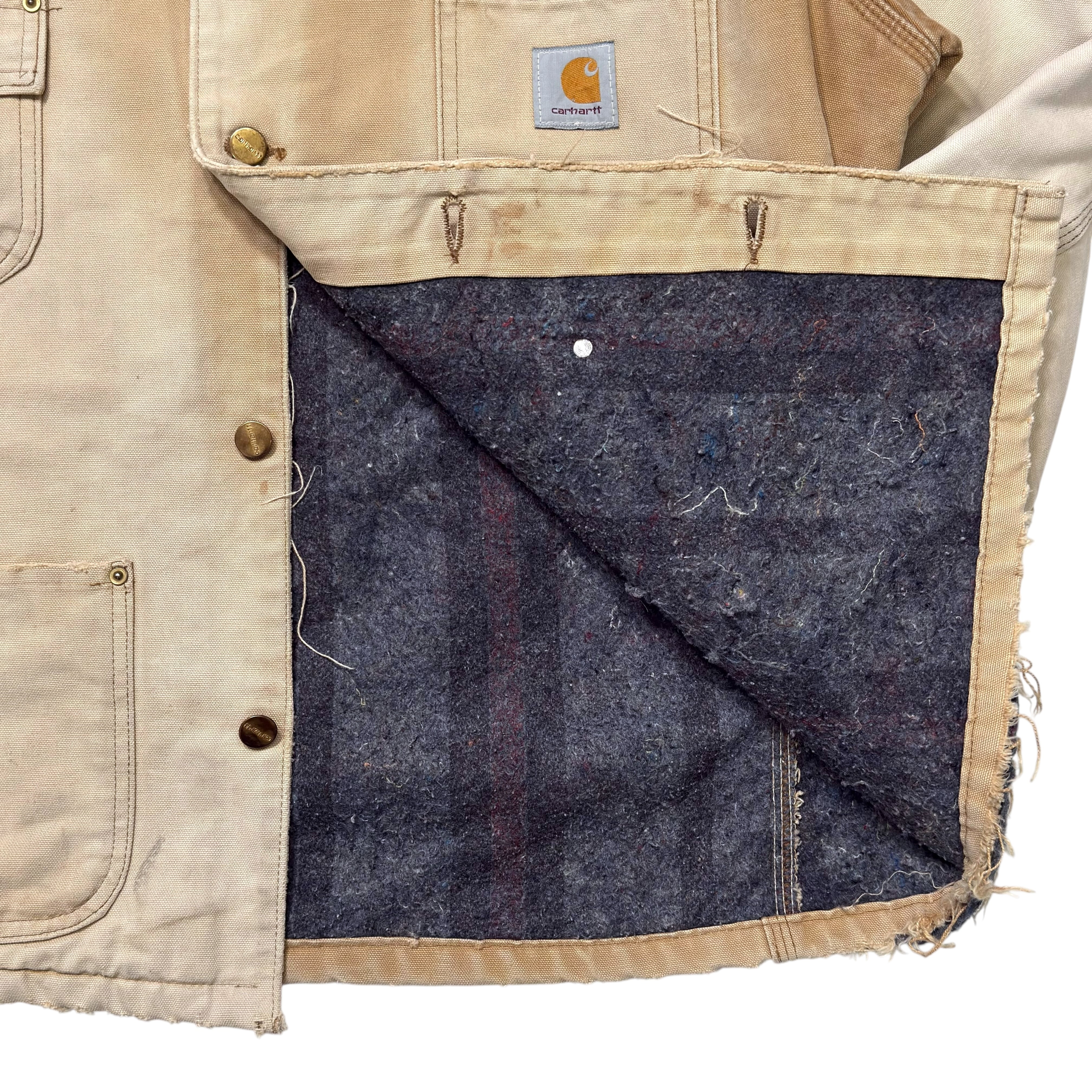 トリプルステッチやブランケットライニングなど、Carharttらしい無骨なディテールも健在。