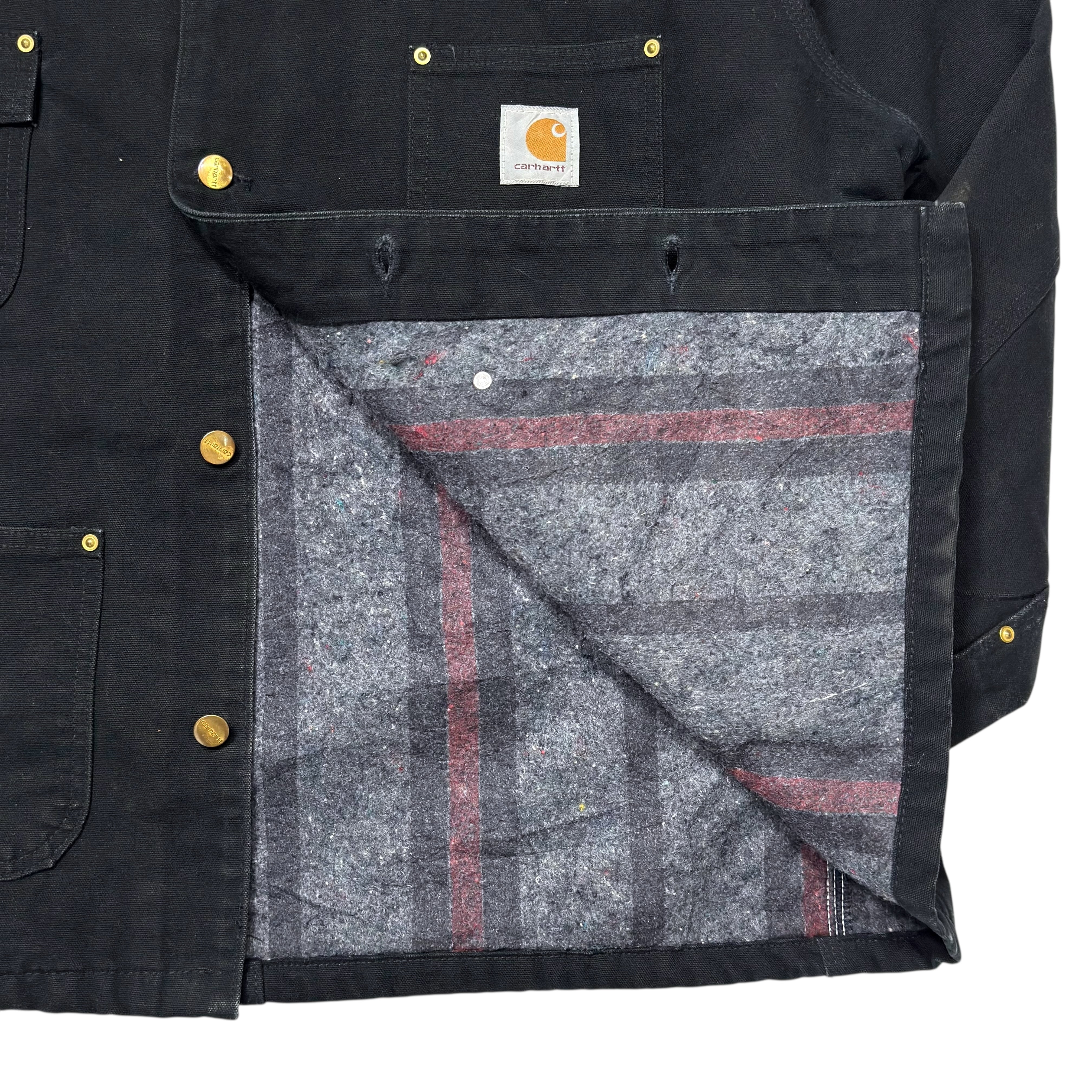 トリプルステッチやブランケットライニングなど、Carharttらしい無骨なディテールも健在。