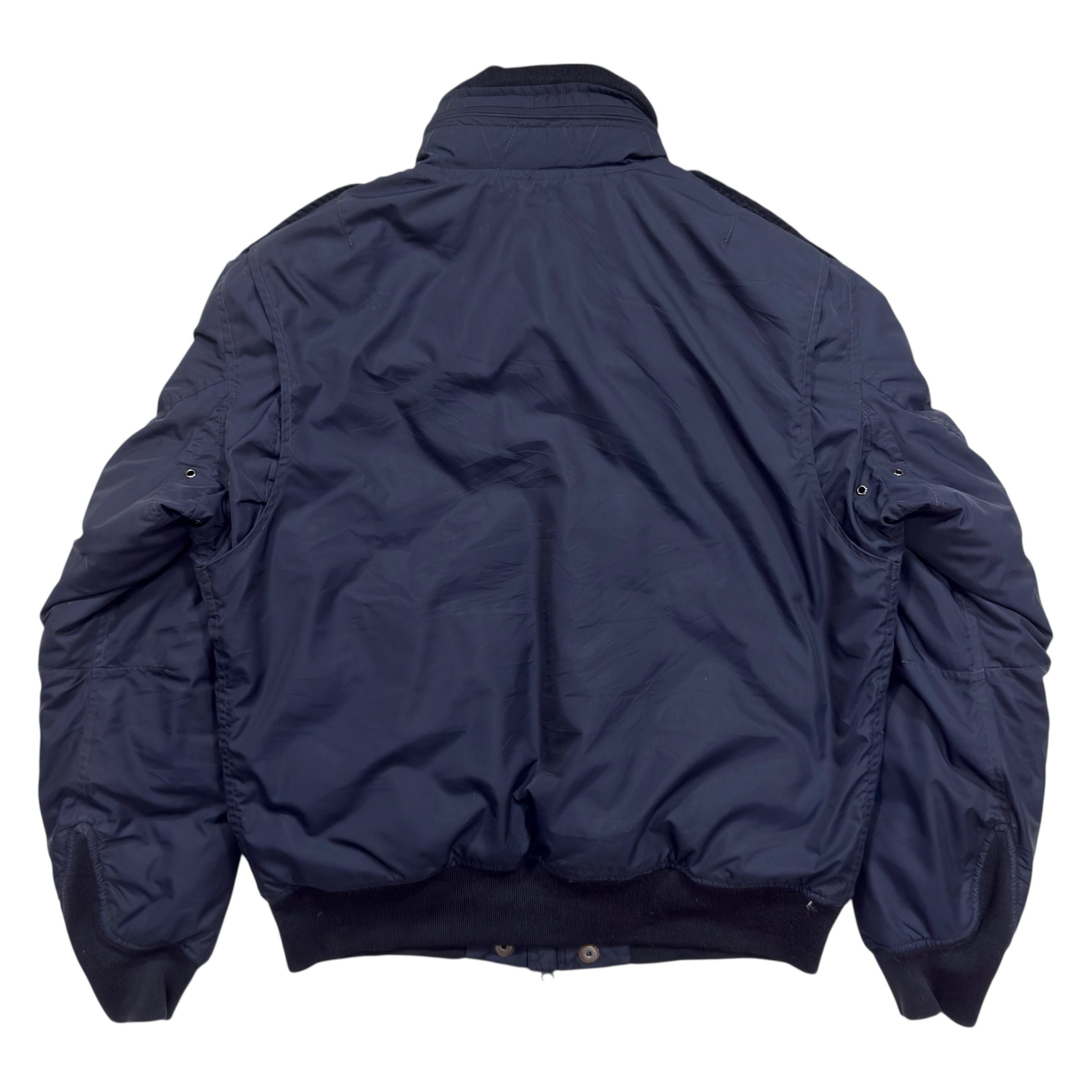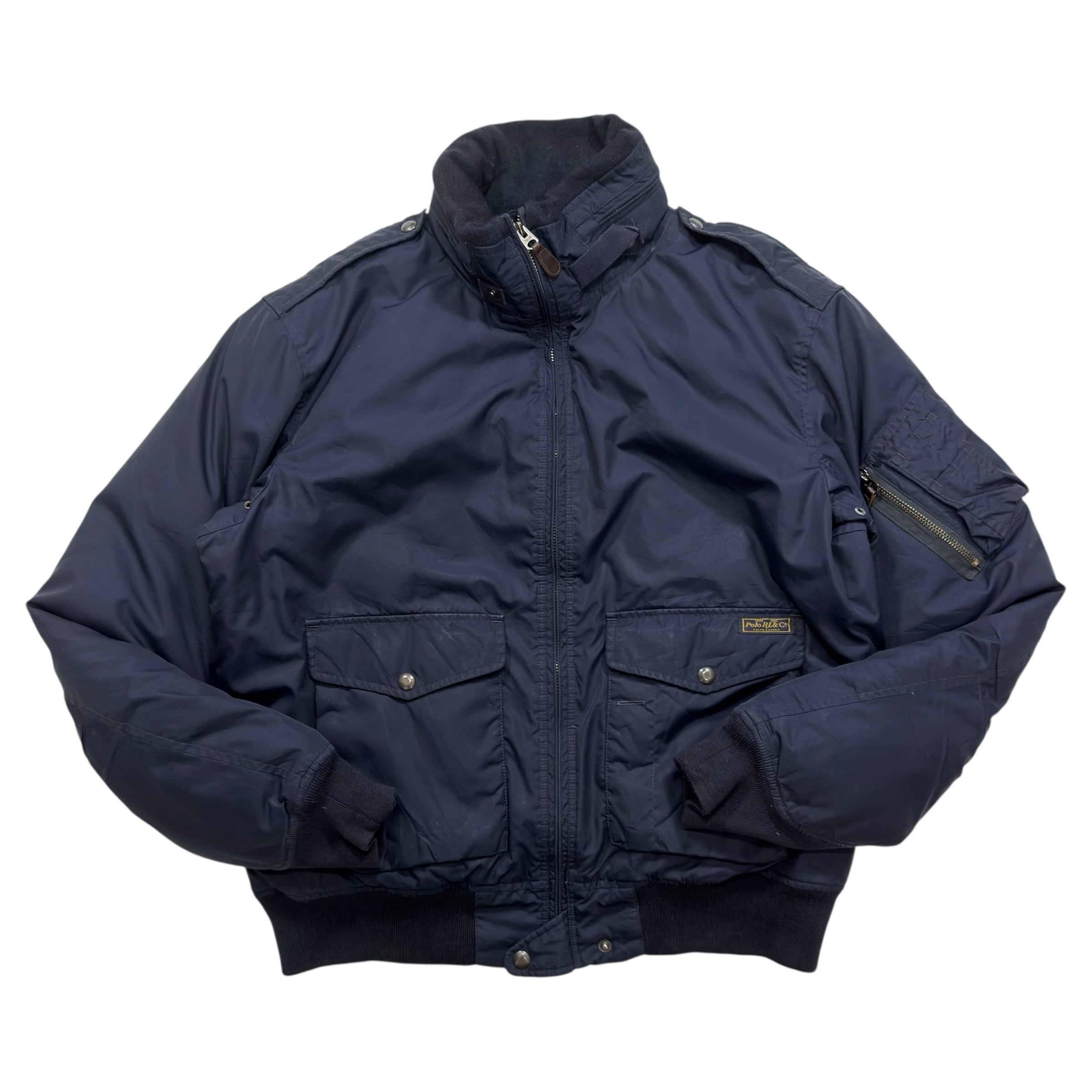 ミリタリーのフライトジャケットをベースにしたようなディテールが魅力で、フロントはジップ仕様、胸下にはフラップ付きポケットを左右に配置。さらに袖にはMA-1系のユーティリティポケットが付きます。