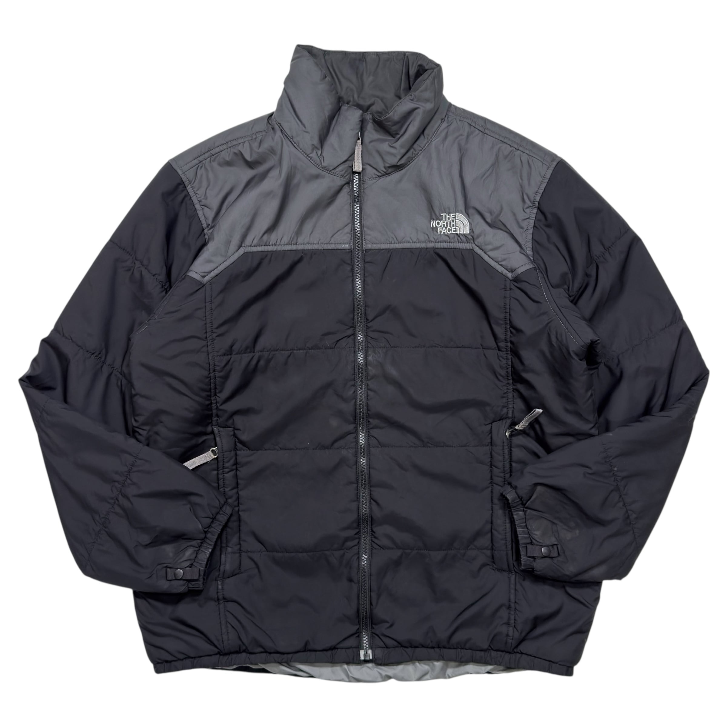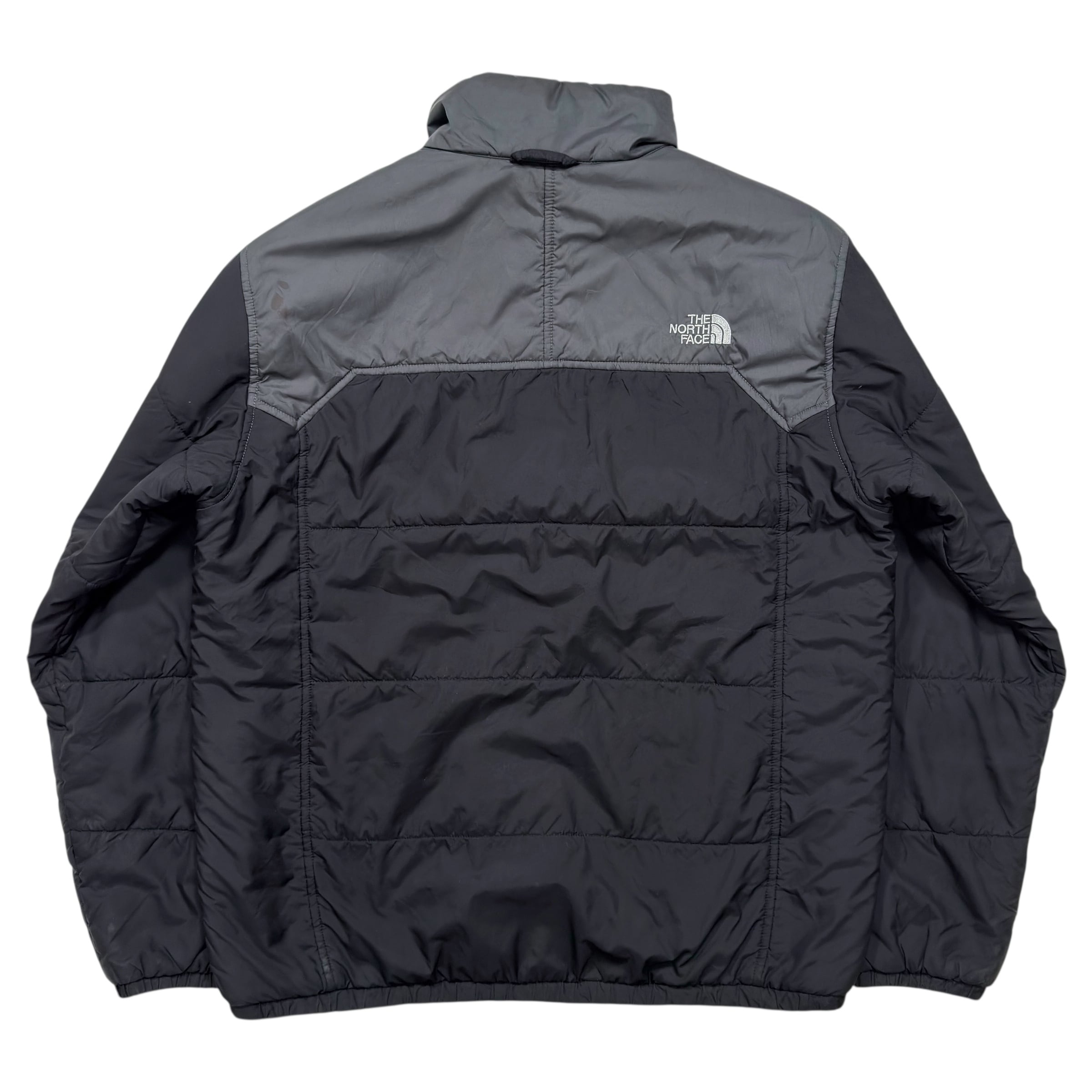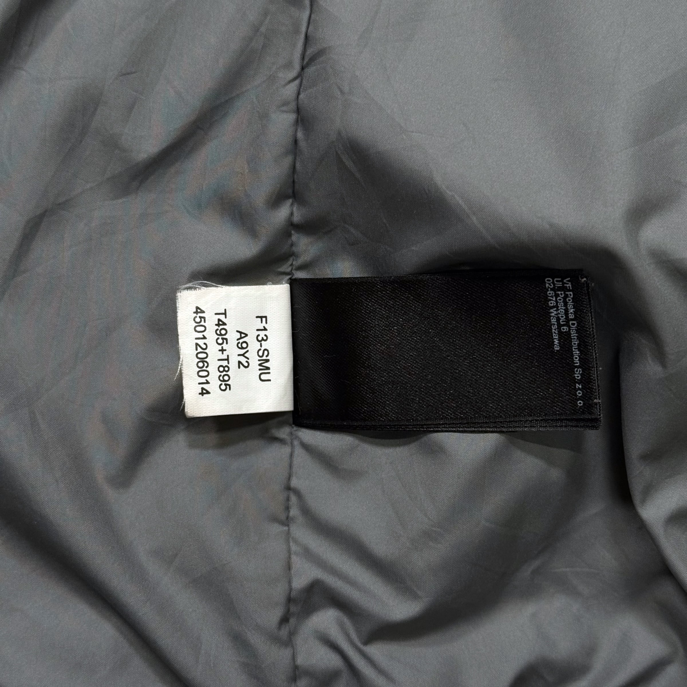 ブラック×グレーの2トーン配色で、アウトドアすぎないバランスが良い1枚です。胸と背中にロゴ、スタンドカラー+フルジップ仕様で首元までしっかりカバーできます。
