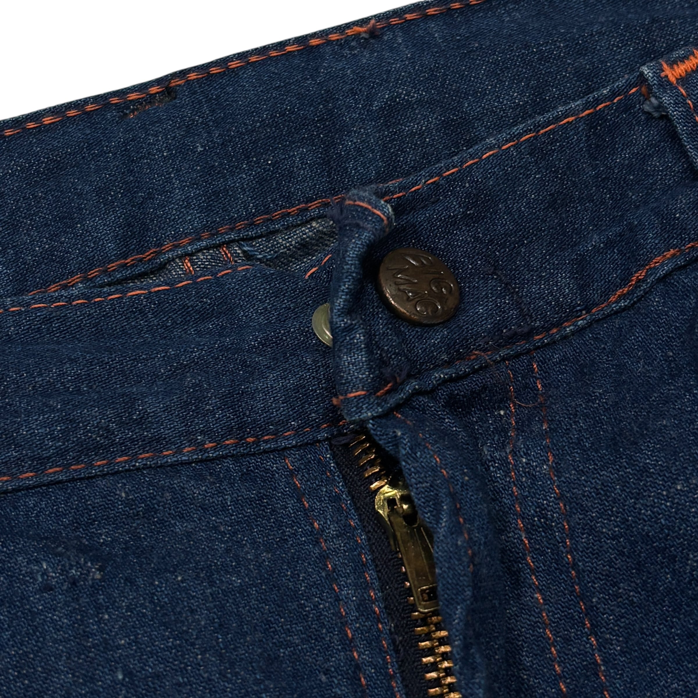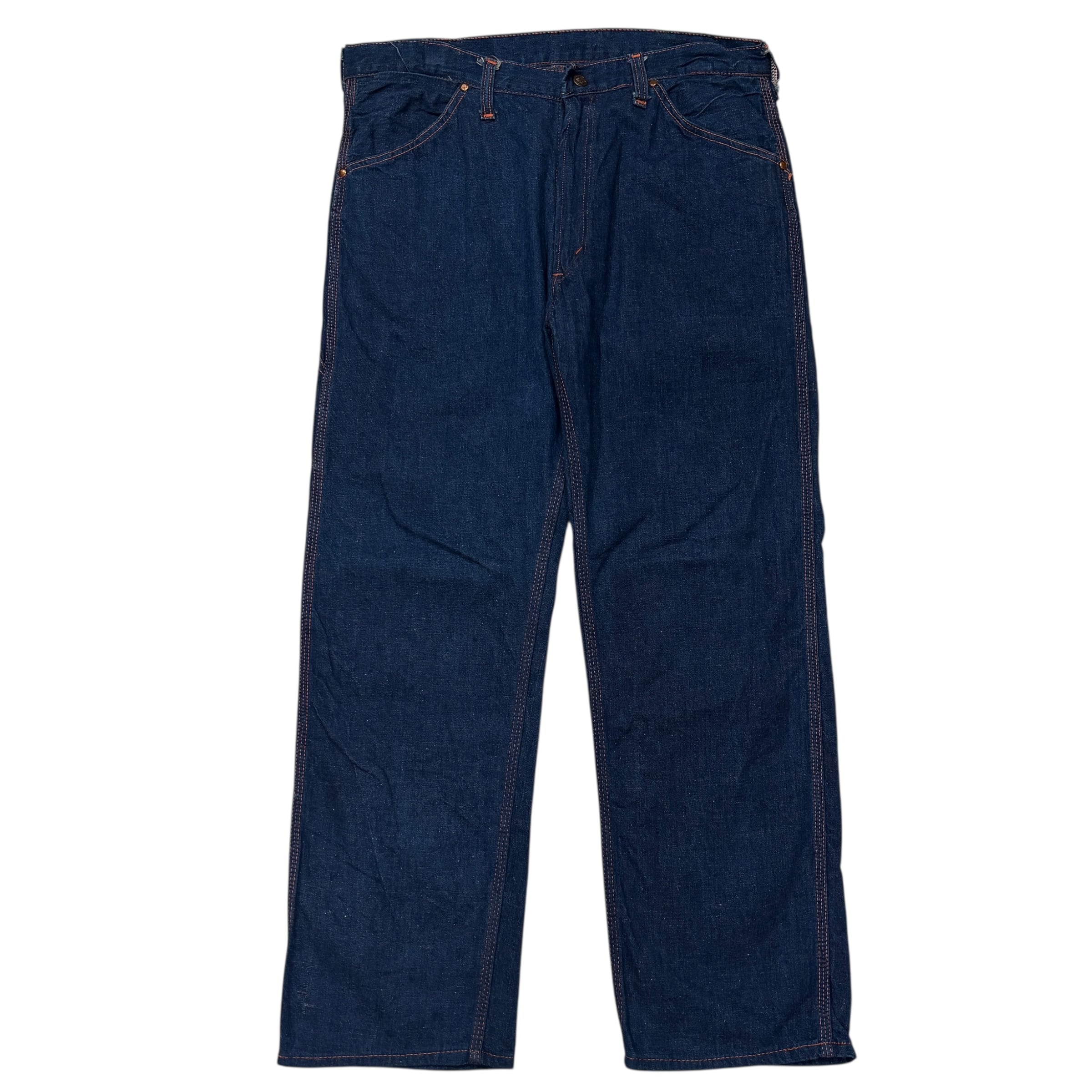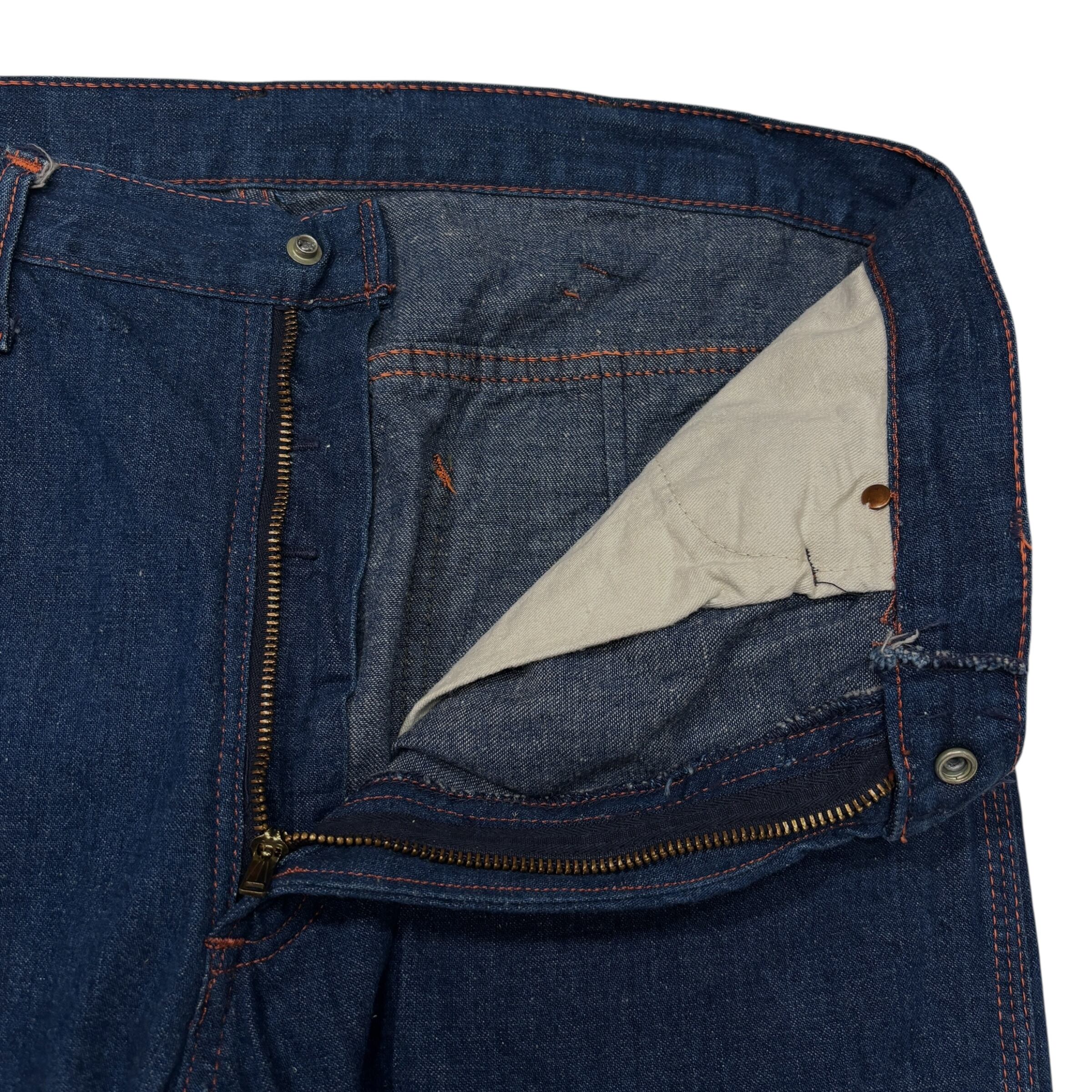 デニムは全体的にしっかりと色が残ったグッドコンディション。インディゴも濃く、70年代らしい表情を保っています。オレンジステッチが随所に使われており、濃色のデニムに映えるアクセント。