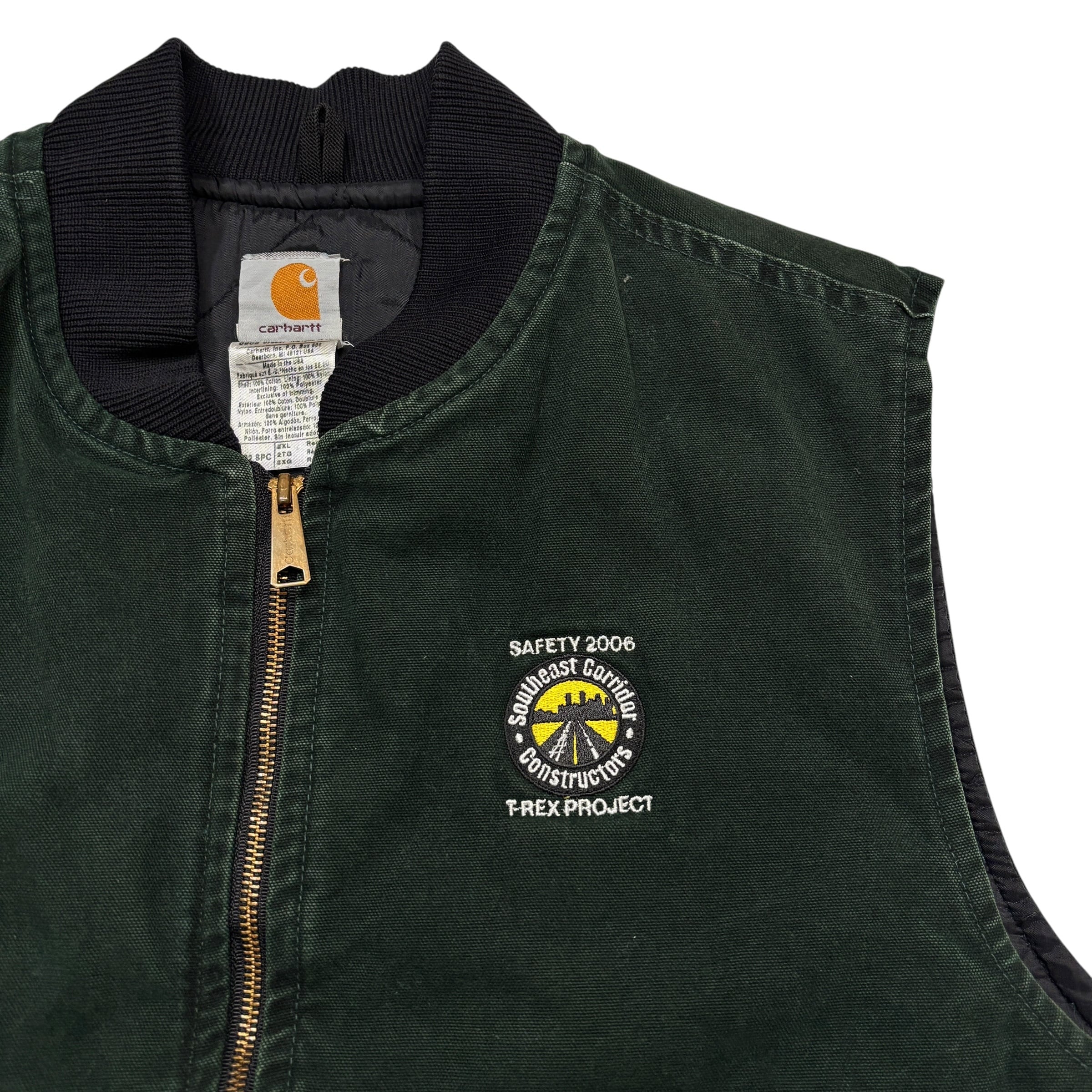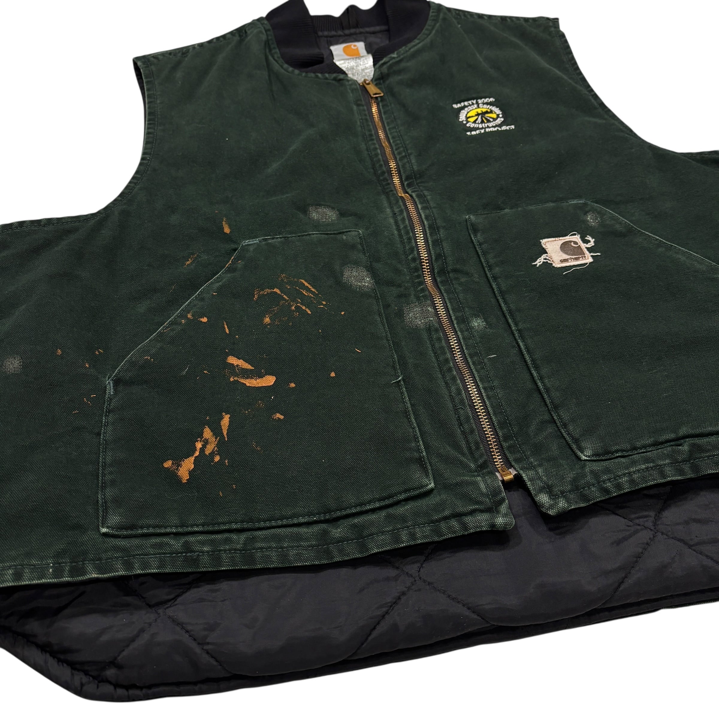 Old,Carhartt Rib Collar Quilted Lined Duck Work Vest【A】