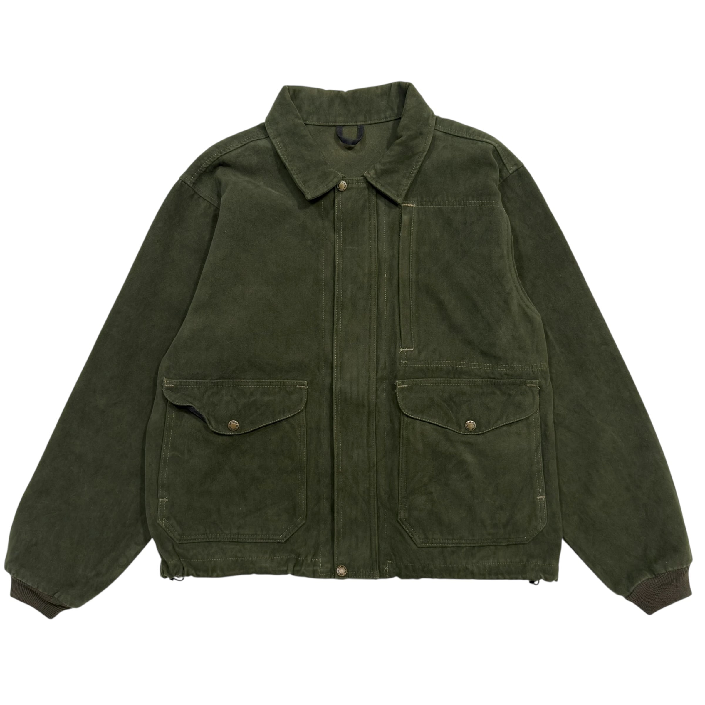 独特の光沢と起毛感を持つオリーブカラーのモールスキン生地は、ベロアのような上品な質感でありながら、ブッシュでの使用にも耐えうる圧倒的な堅牢さを備えています。ハンドウォーマーポケットや内側のジップポケットなど、ハンティングやワークの意匠を継承した機能美が光り、「MIGHT AS WELL HAVE THE BEST(どうせ持つなら最良のものを)」というブランド哲学を体現するような重厚な作りが魅力です。使い込むほどに味わい深いエイジングを楽しめる逸品です。