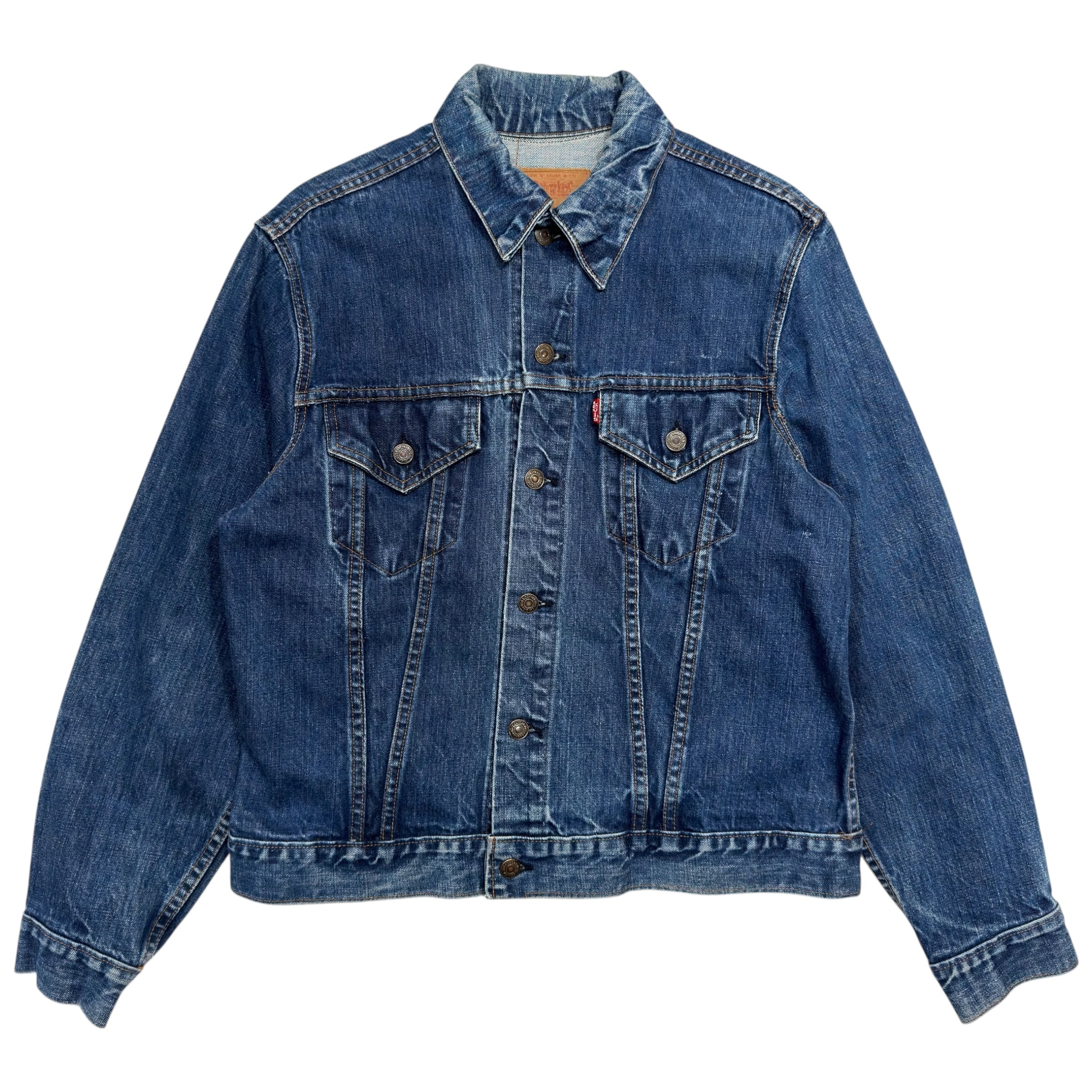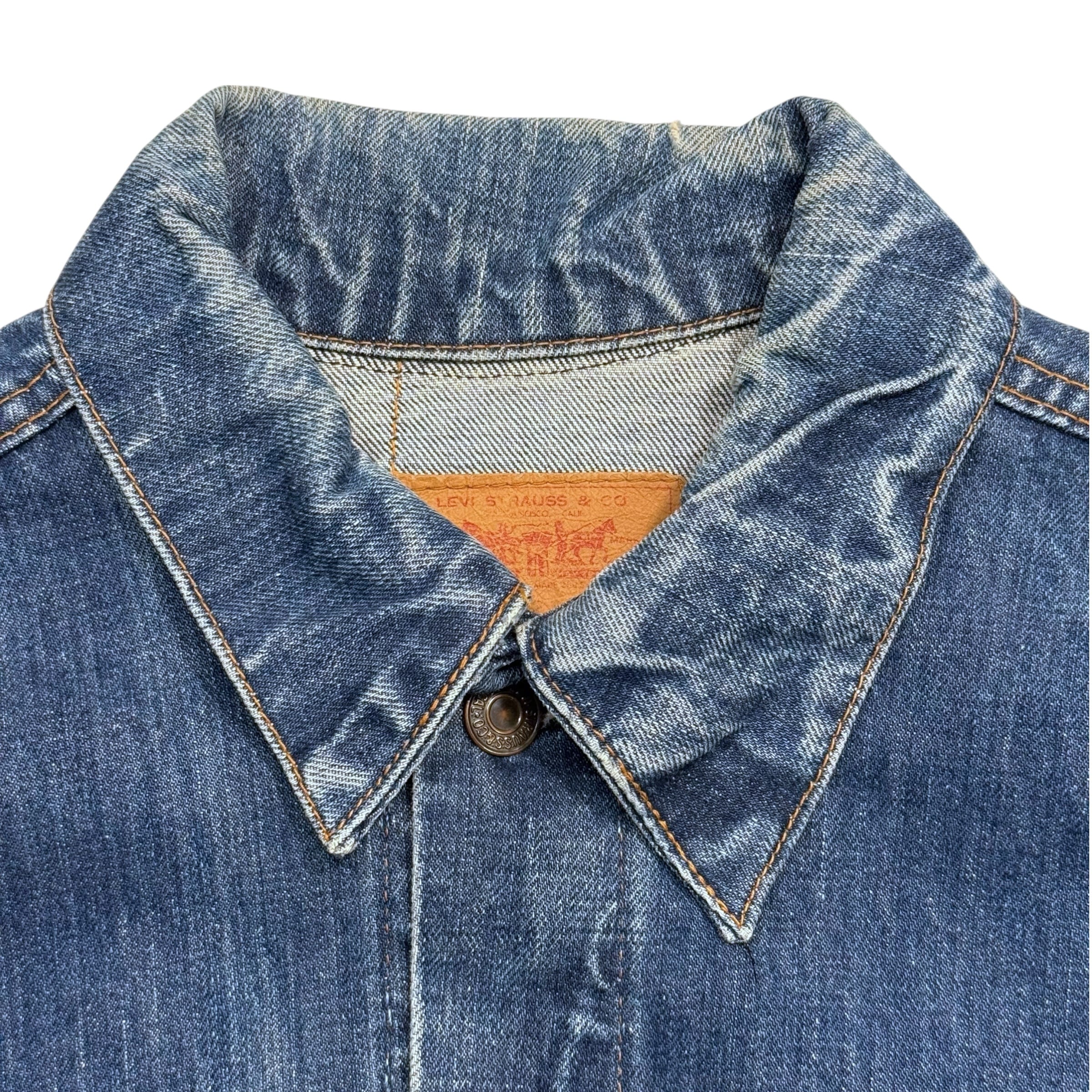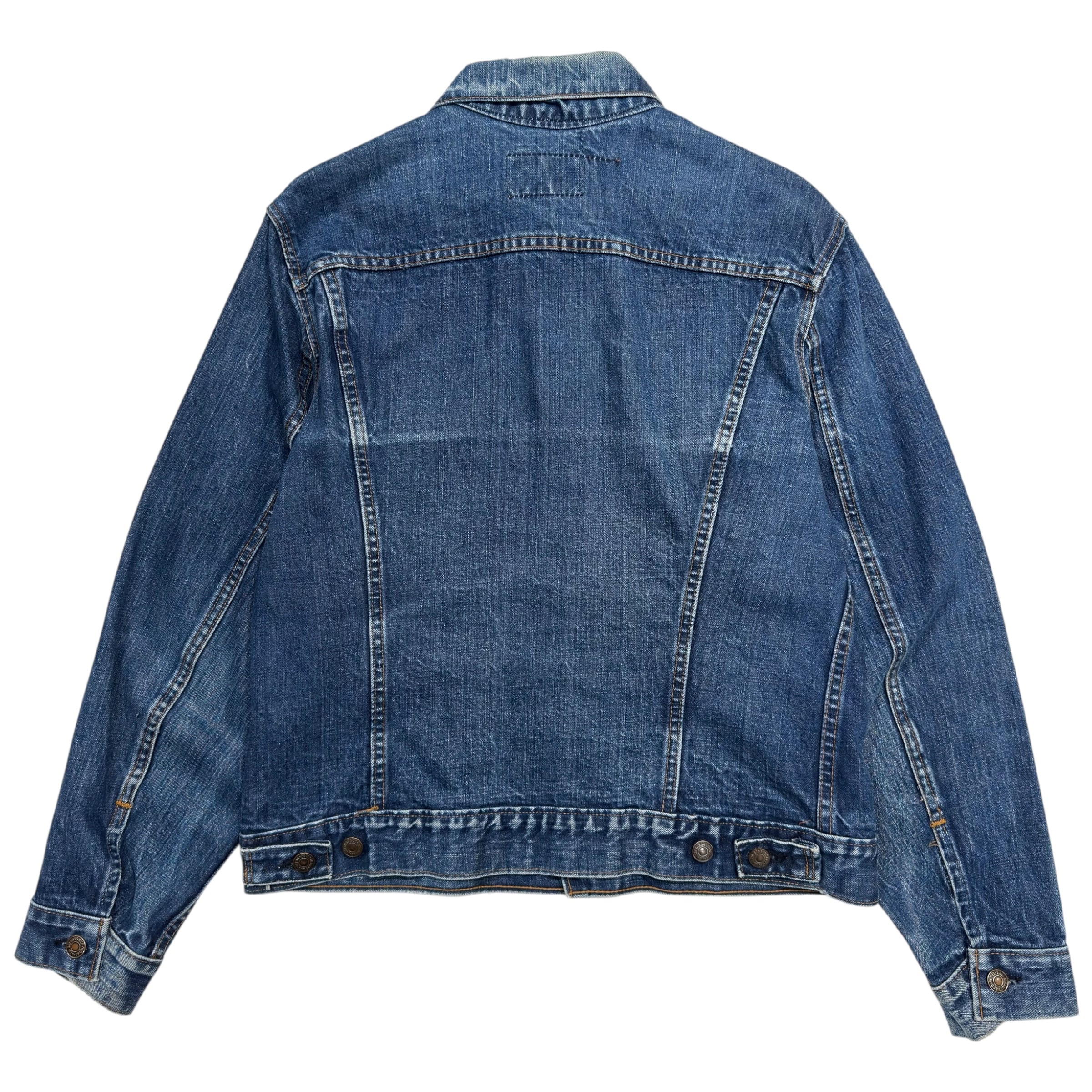 長年の着用によって生まれた、ヴィンテージならではの美しい縦落ちやアタリ、そして深みのあるインディゴブルーの色残りが絶妙なバランス。前身の3rdモデル(557)と比べて着丈がやや長めに設定されている70505特有のシルエットは、現代のファッションにも非常に取り入れやすく、Tシャツやスウェットの上から羽織るだけでも様になります。
