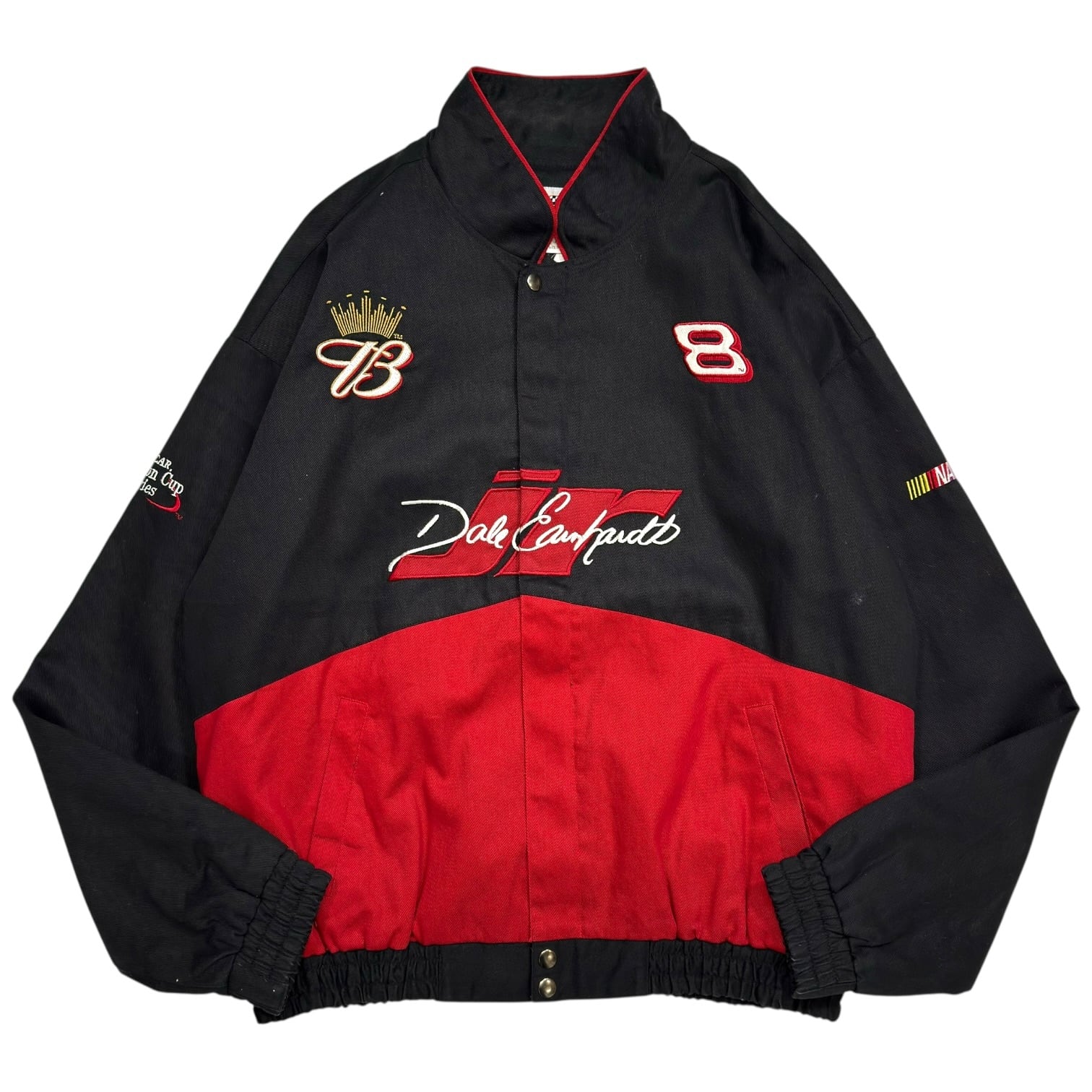 NASCAR界のスーパースター、"Dale Earnhardt Jr."のシンボルである「カーナンバー8」と、当時のメインスポンサーであった"Budweiser"の王冠Bロゴが落とし込まれたレーシングジャケット。