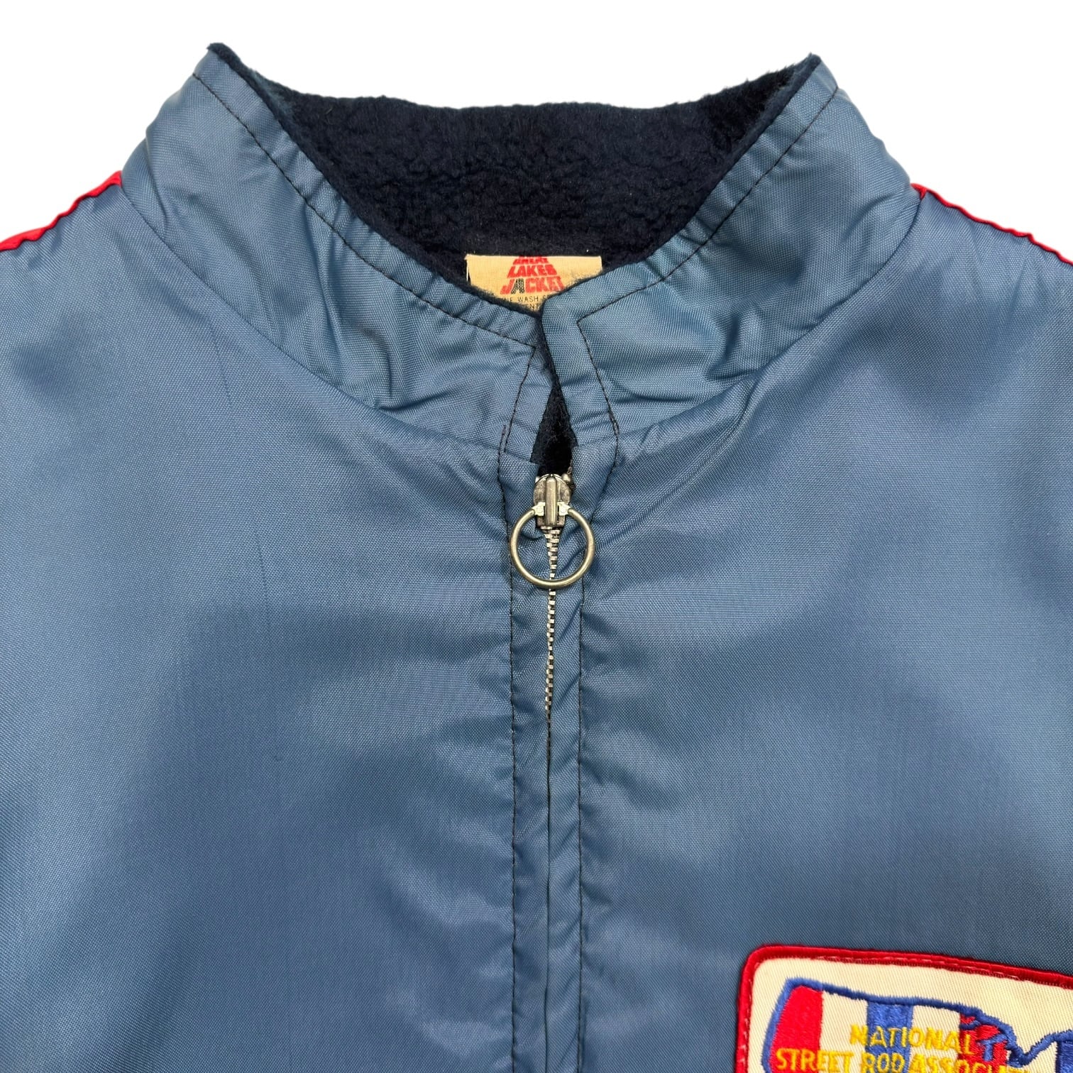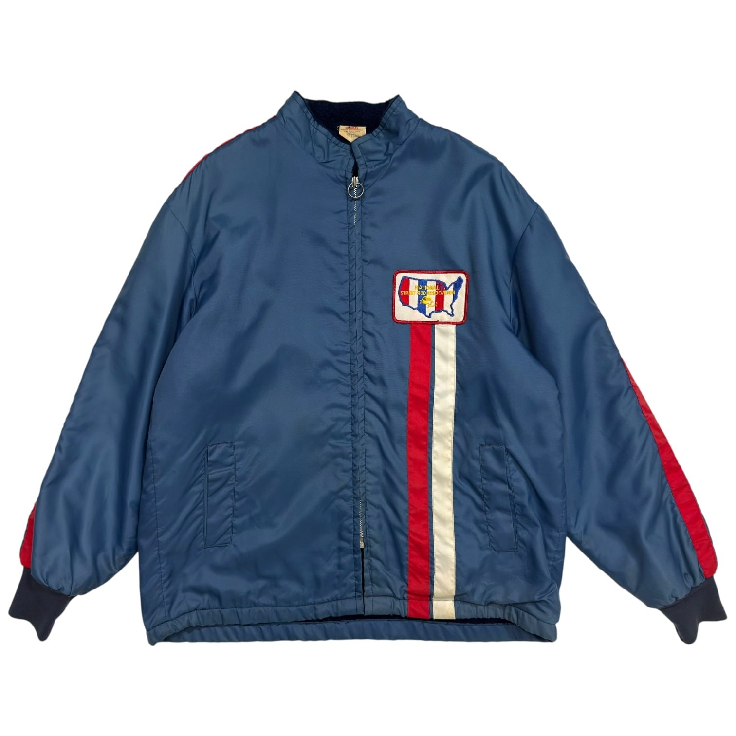 胸に、アメリカの由緒あるカスタムカー・ホットロッド愛好家の団体「NATIONAL STREET ROD ASSOCIATION(NSRA)」のワッペンが付けられたレーシングジャケット。