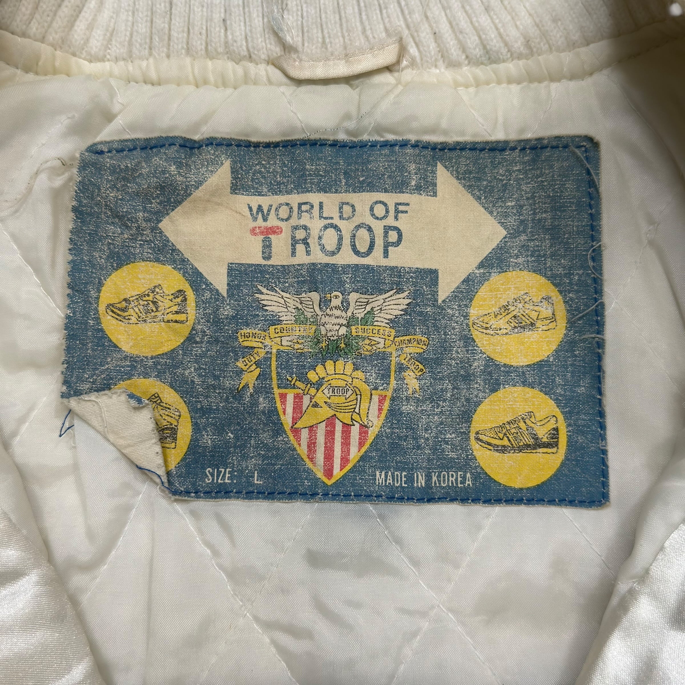 80年代のオールドスクールヒップホップ、ストリートカルチャーを代表するブランド、World of Troopのヴィンテージサテンジャケット。