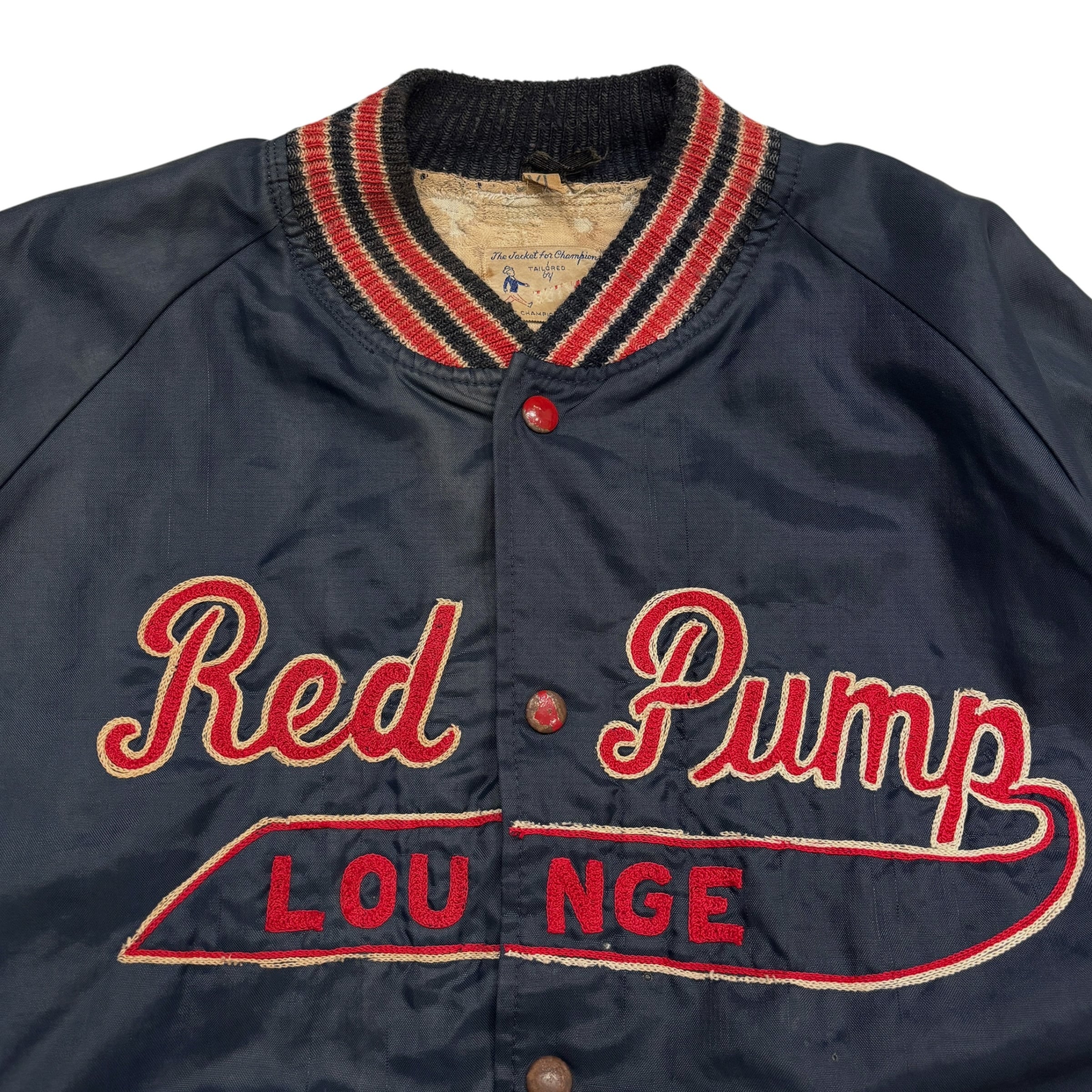 60's-70's Satin Varsity Jacket "Red Pump LOUNGE"