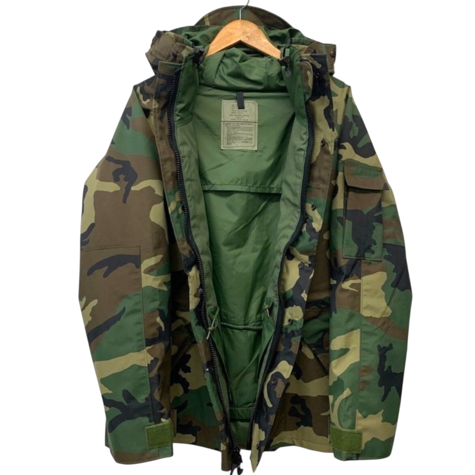 ウッドランドカモ(M81)は、80〜90年代のアメリカ軍を象徴するパターンで、ミリタリーウェアの中でも特に人気の高い定番柄。スノーボードやバイクシーンなどでも高い支持を得ており、ファッションアイテムとしても評価の高い一着です。