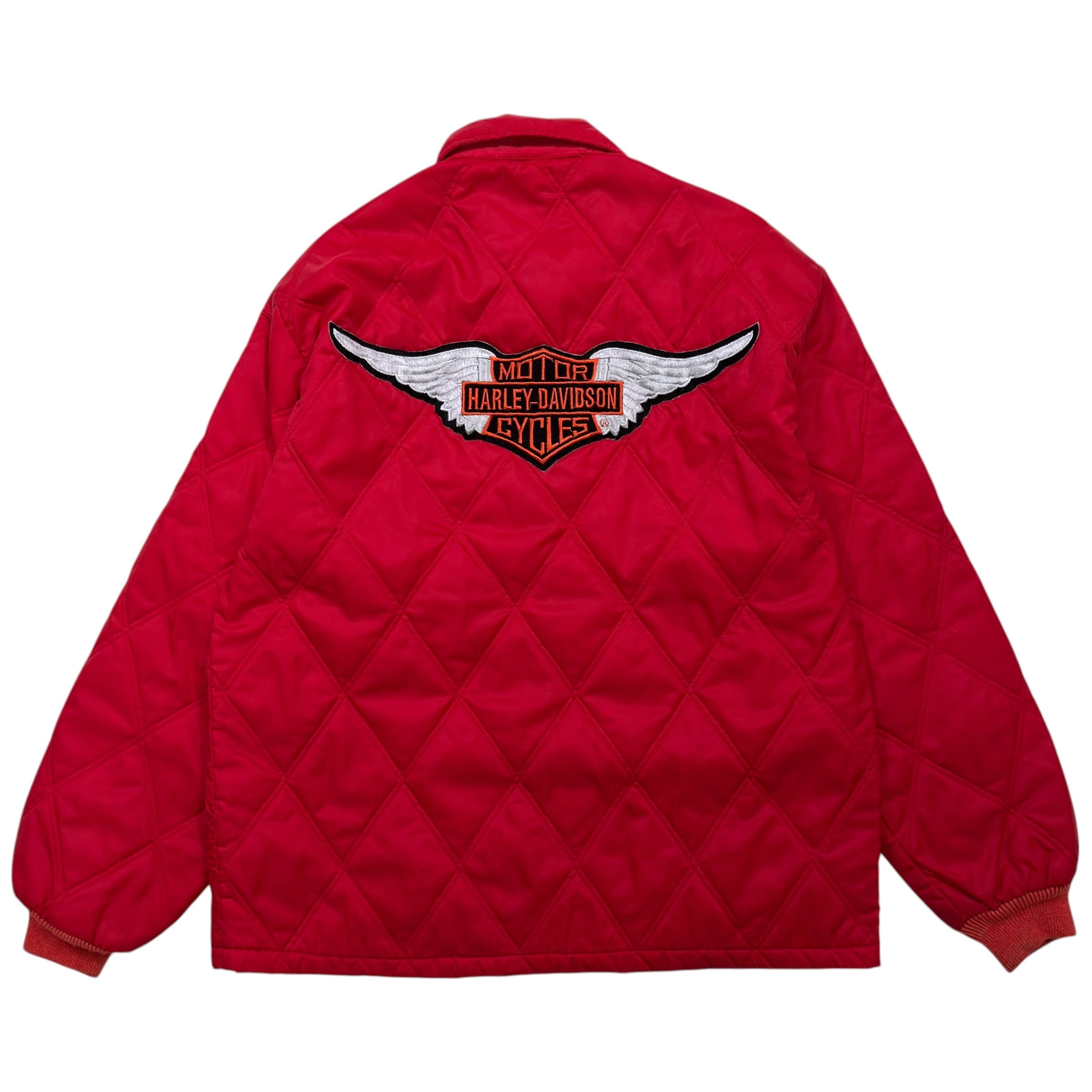 鮮やかなレッドのボディが目を引く、Swingster製のキルティングジャケット。