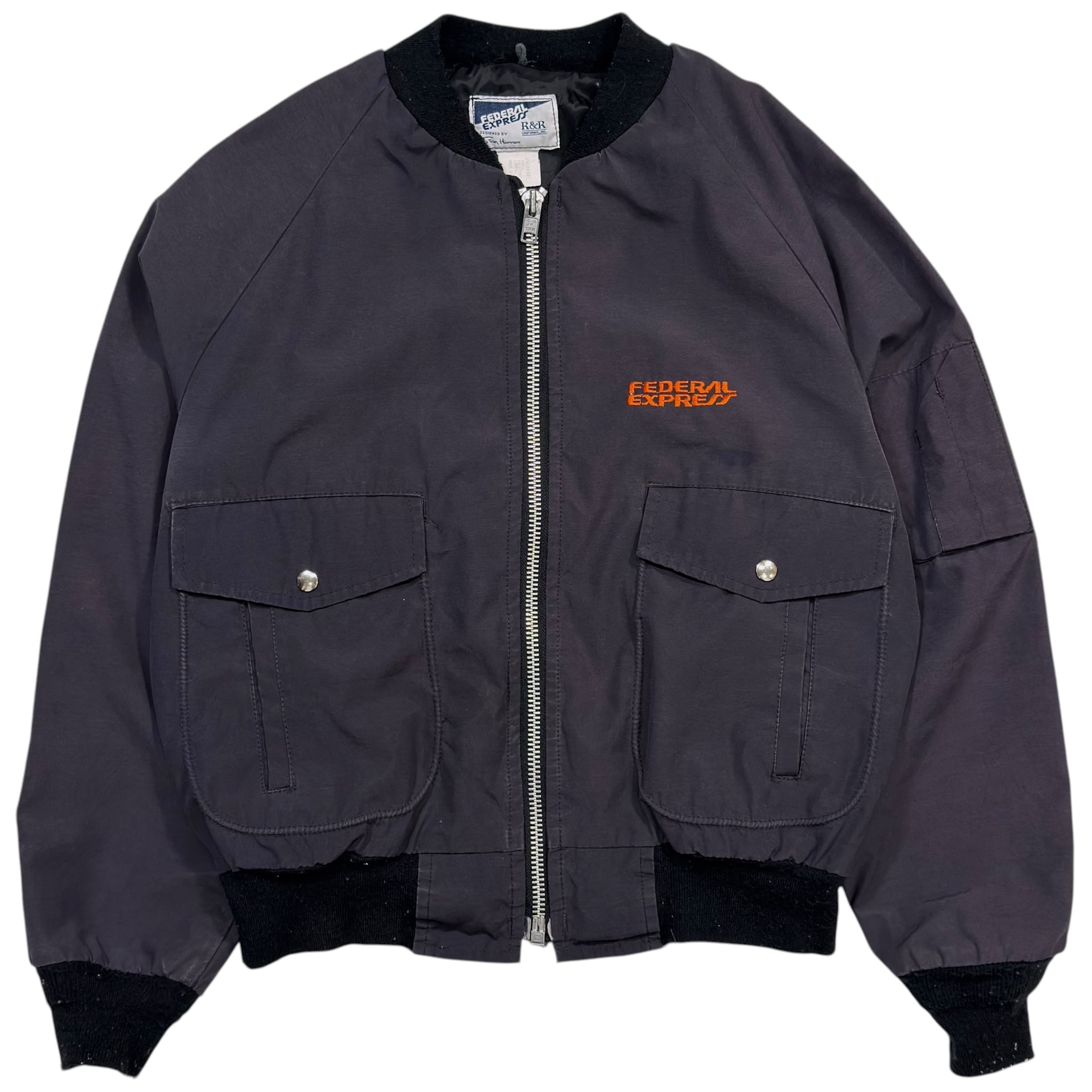 ブラックのボディをベースに、胸元のロゴ刺繍や袖のライン使いが効いた、企業物ならではの実用性とデザイン性を兼ね備えた1着です。ワークウェアらしい無駄のない作りながら、FedExらしい配色がしっかりアクセントになっていて、シンプルな中にもユニフォーム特有の個性が感じられる仕上がりです。