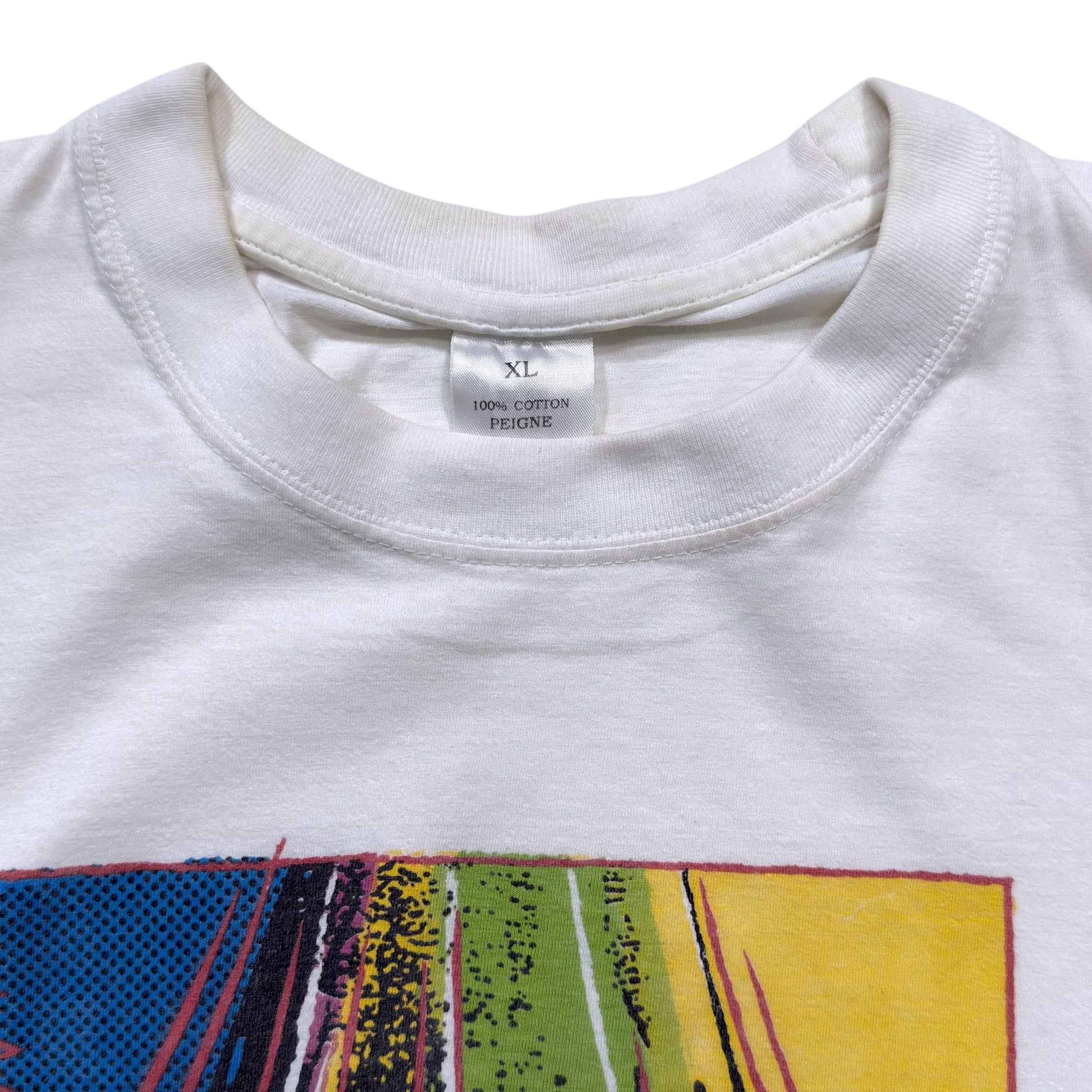 Coca-Colaのボトルモチーフをポップに落とし込んだプリントTee。ホワイトボディのフロント中央に、カラフルなグラフィックが入っており、企業ロゴ物らしいキャッチーさがありながら、少しアート寄りの見え方も楽しめる1枚です。おなじみのCoca-Colaロゴをベースにしつつ、ボトルを大胆に切り取ったデザインなので、いわゆる定番のロゴTeeとはまた違った雰囲気があるのも魅力かと。
