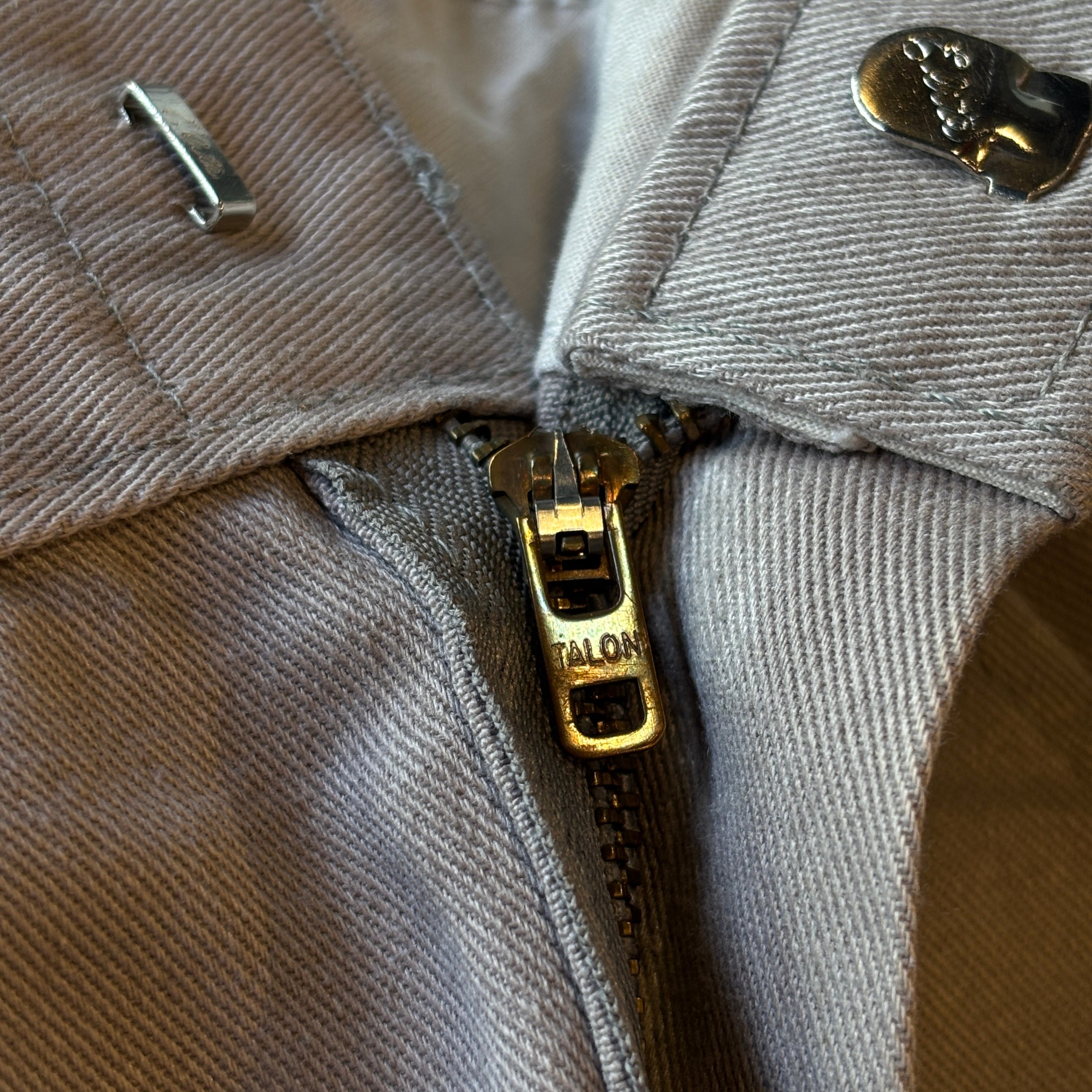股上は深めで、全体的にゆったりとしたストレートシルエット。ウエスト部分は調整用の縫い合わせがされており、解くと1インチアップ可能。